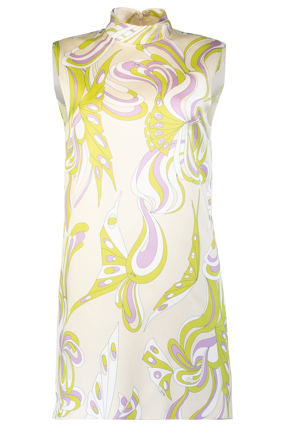 Emilio Pucci sleeveless printed mock neck dress in white green.