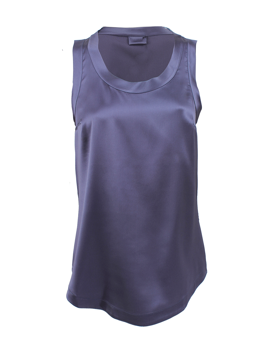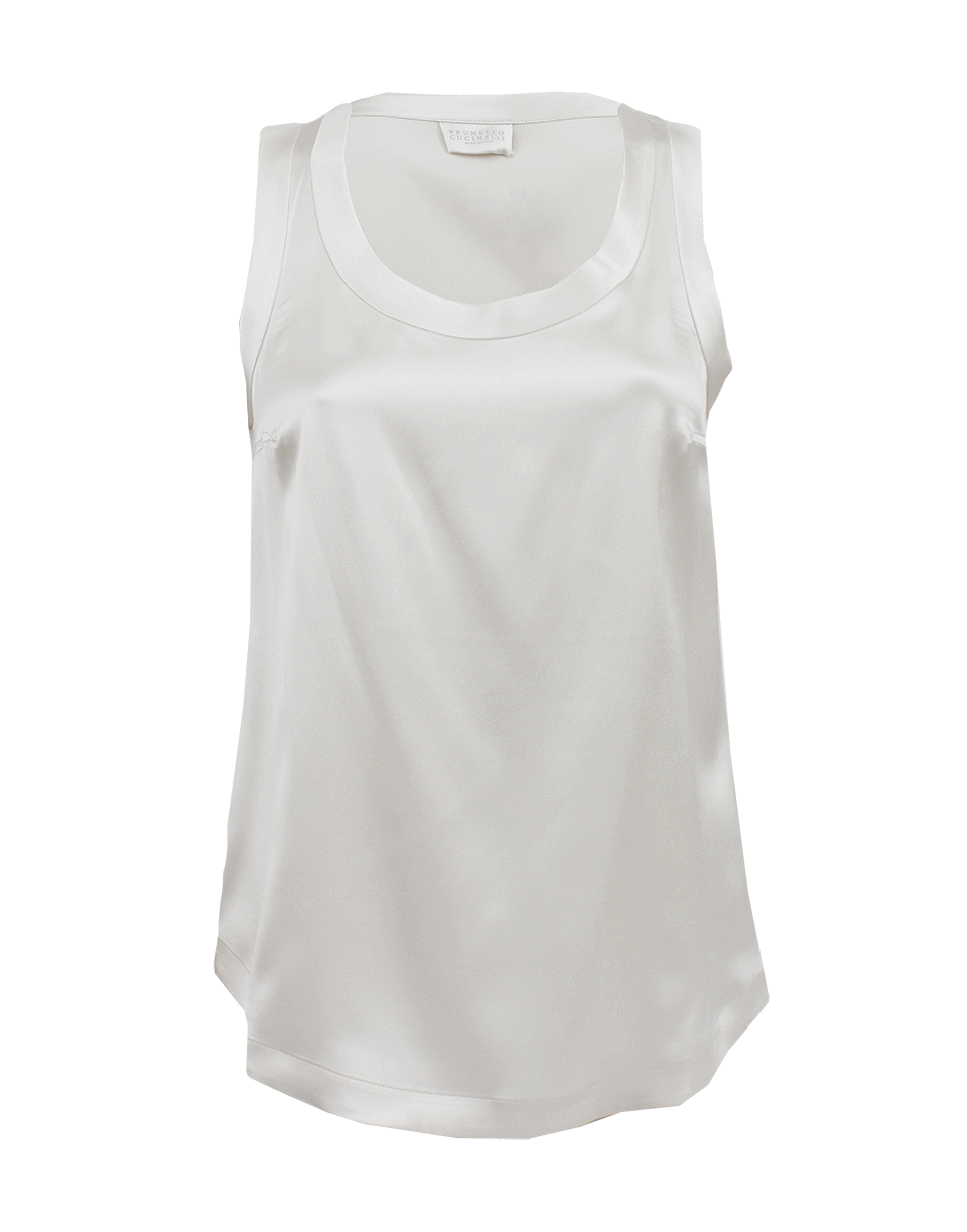 Brunello Cucinelli's sleeveless satin scoopneck tank is straight from a luxuriously silk dream. Pair this top with a leather mini skirt to play with textures.