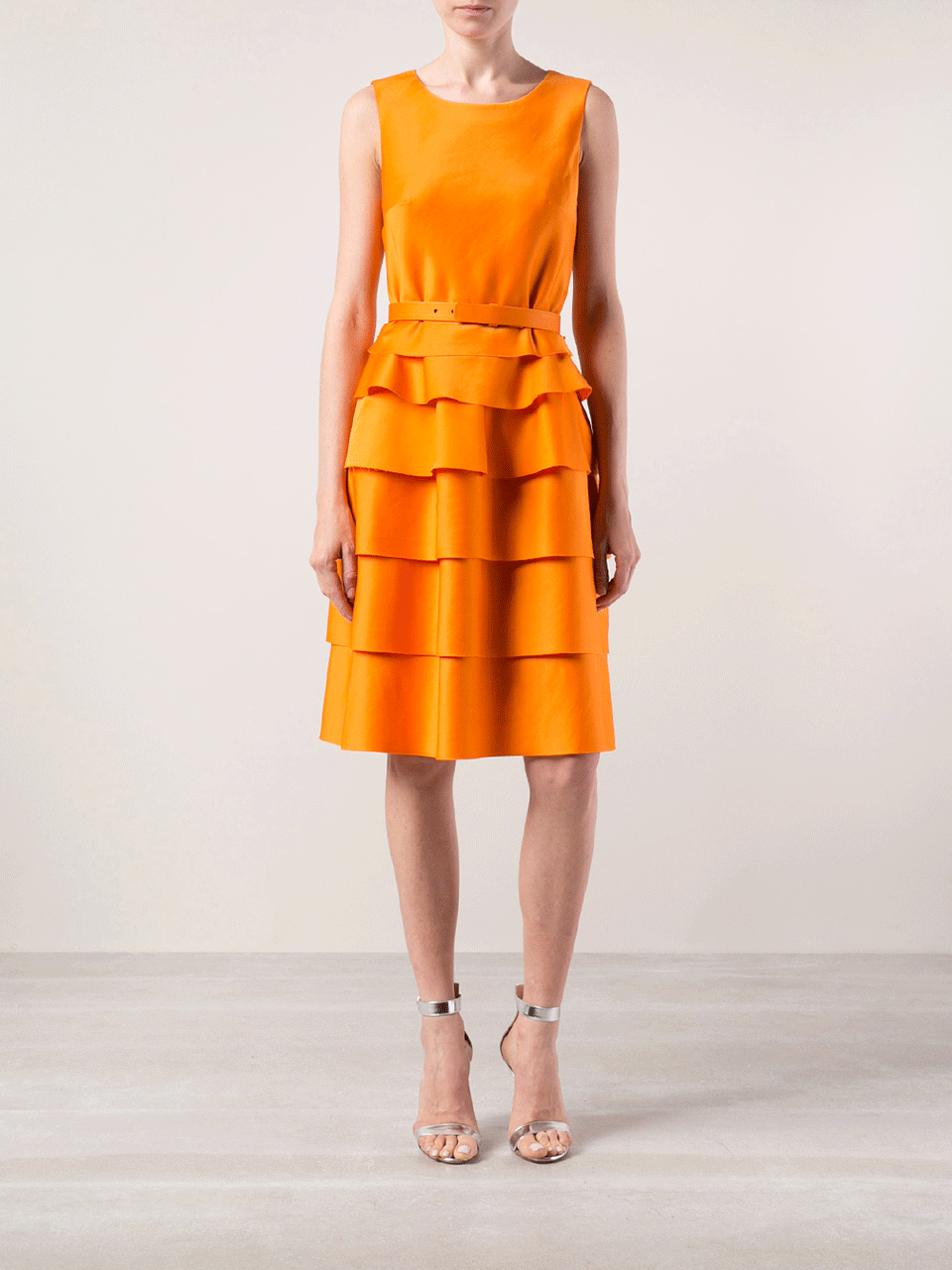This Tiered Bell Bottom Dress From Oscar De La Renta Brings A Bright Color To A Classic Oscar Shape