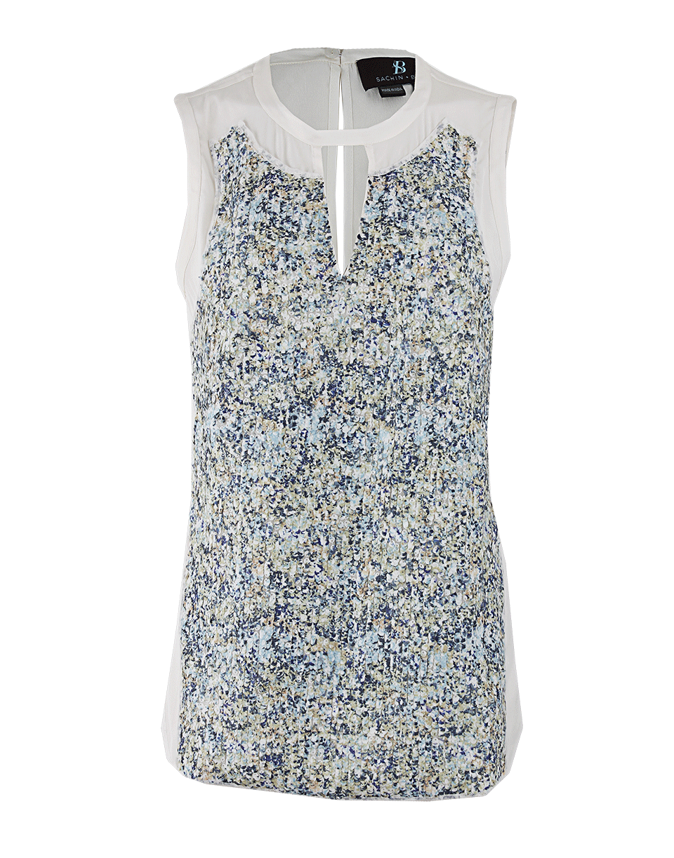 Splashing in stunning colors, this Sachin & Babi sleeveless watercolor delmare top is floral perfection. Pair with cropped ankle pants and pointed pumps for weekend rendezvous.