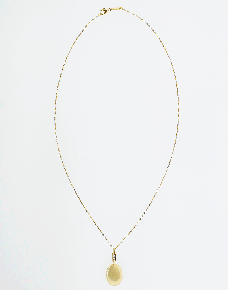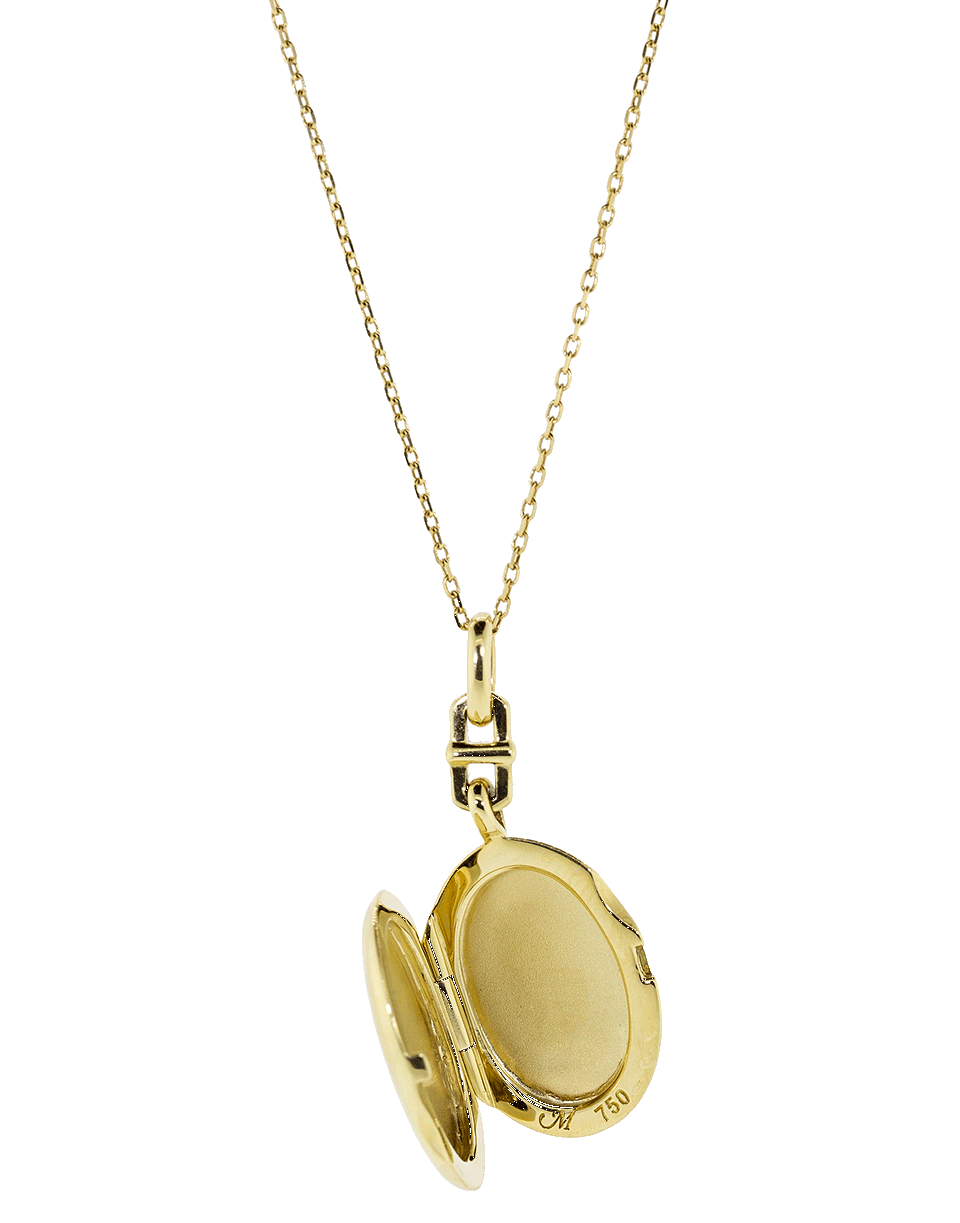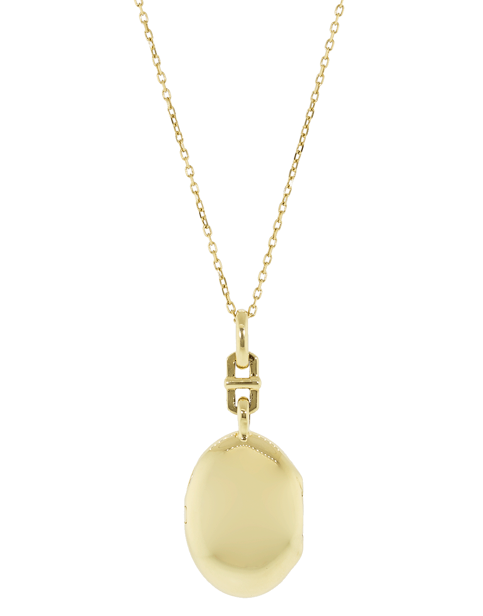 Monica Rich Kosann's 'Eve' necklace features a slim, yellow gold locket on a delicate chain.