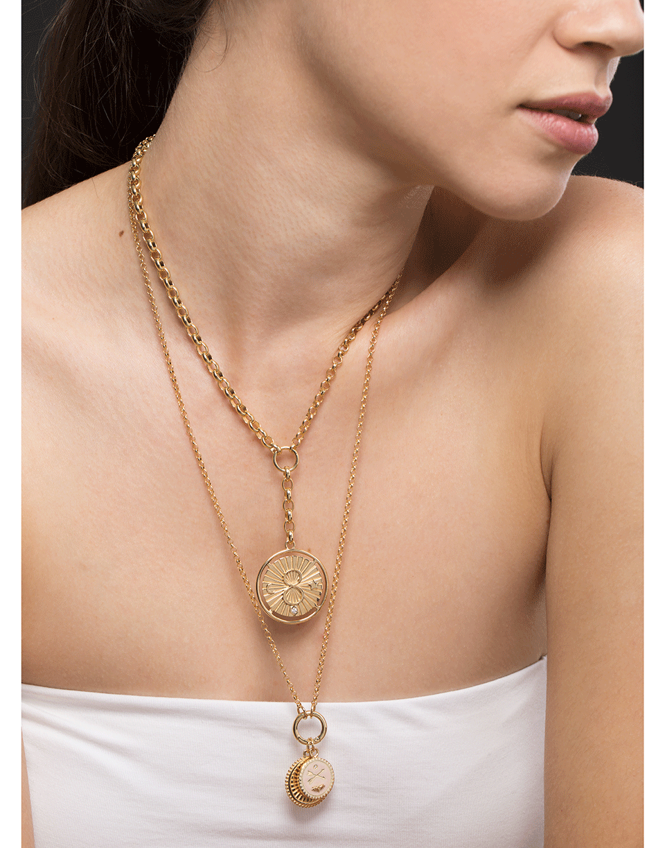 Foundrae 22" small belcher open chain with classic chubby annex clip rendered in 18k yellow gold. Add a Foundrae medallion to complete the set.
