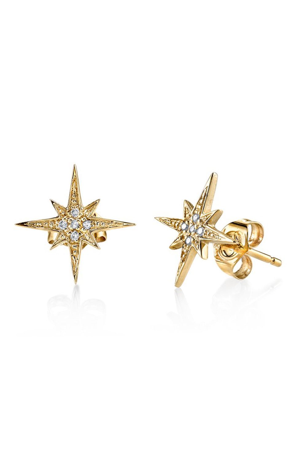 Sydney Evan 14k gold & pavé diamond small starburst stud earrings. Each starburst measures approximately 1/2" x 1/2". 14k gold post and backing.