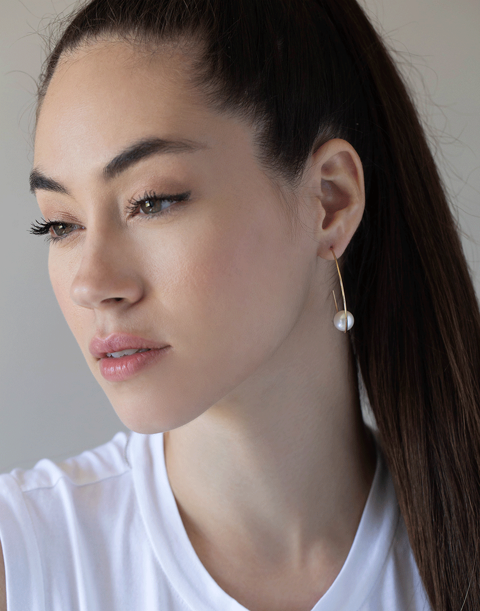 Sea of Beauty Collection small floating pearl hoop earrings. For pierced ears