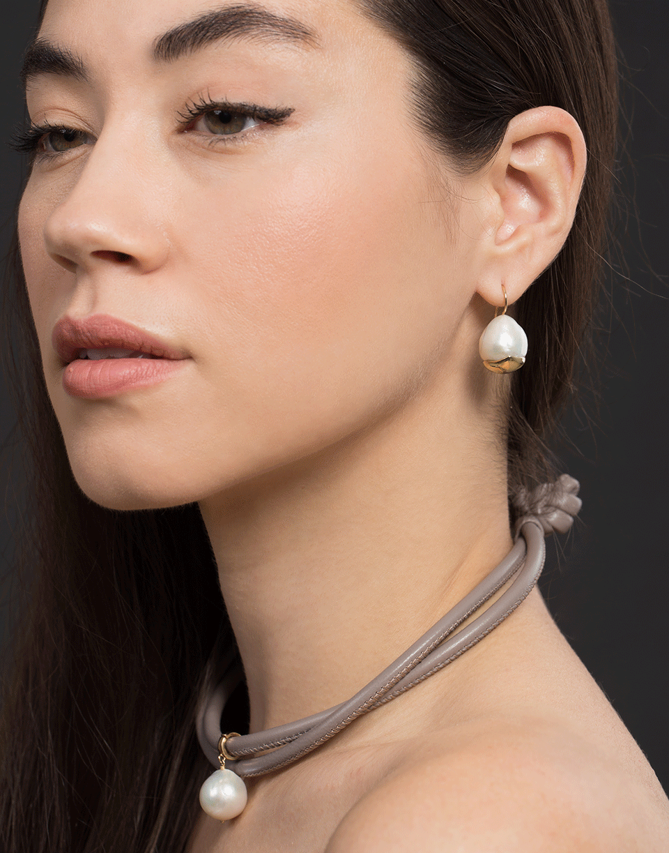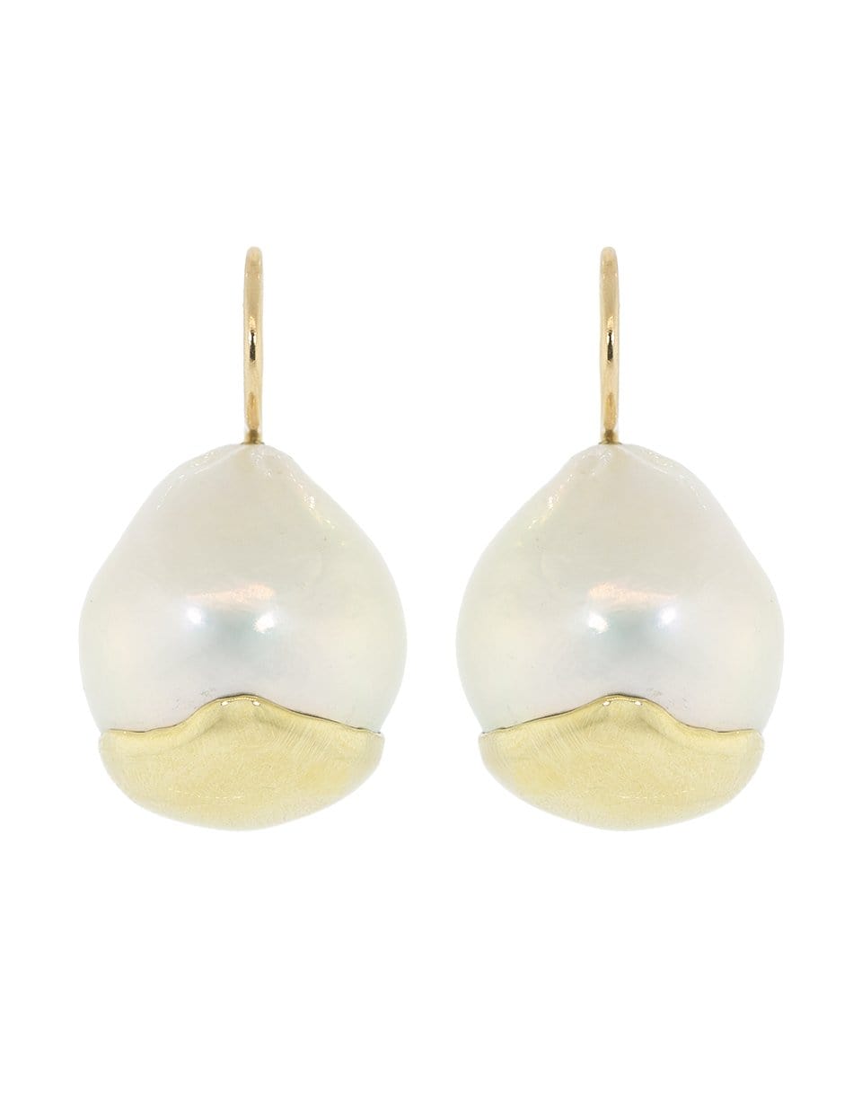 Mizuki Sea of Beauty Collection small fluid gold on baroque fresh water pearl earrings. For pierced ears