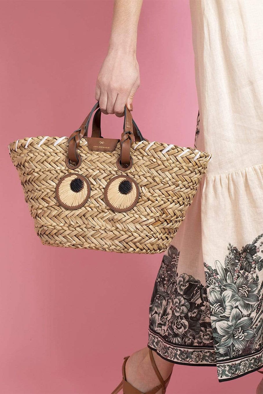 Anya Hindmarch small paper eyes basket seagrass in natural.