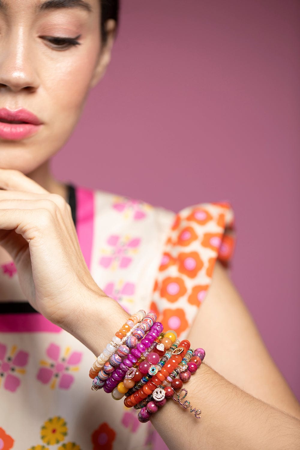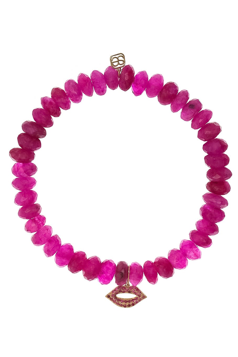 Sydney Evan small ruby lips charm on fuchsia quartz faceted bead bracelet.