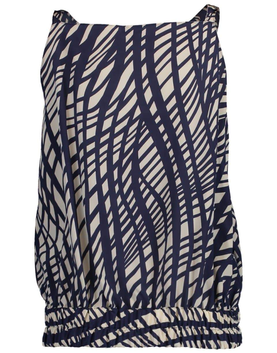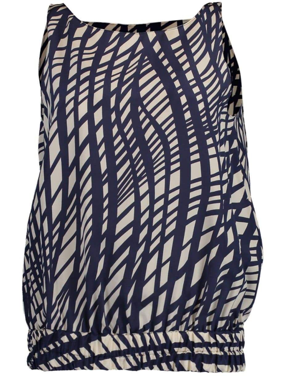 Blue and white silk print tank top from Aspesi with a regular fit, sleeveless cut, smocked hem, and a boatneck.