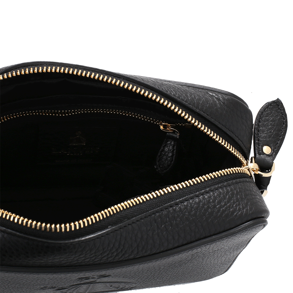 Leather Outer With Top Zip Fastening Closure And Front Embossed Logo Stamp