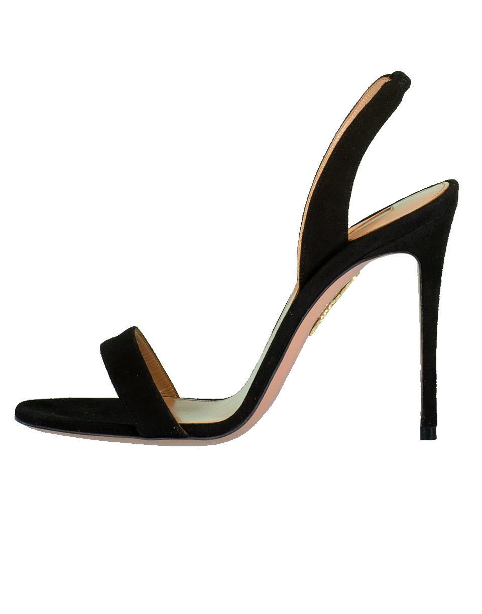 Black ‘So Nude’ 105 sandals by Aquazzura. These calf leather sandals feature an open toe, a 105mm/4 inches stiletto heel, a toe strap and an elasticated slingback ankle strap. All leather.