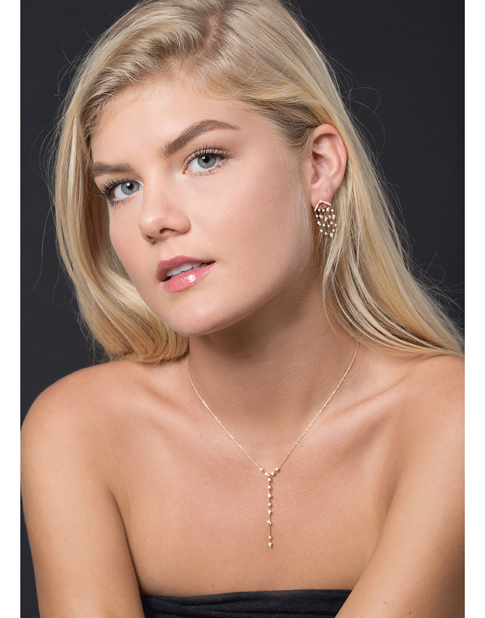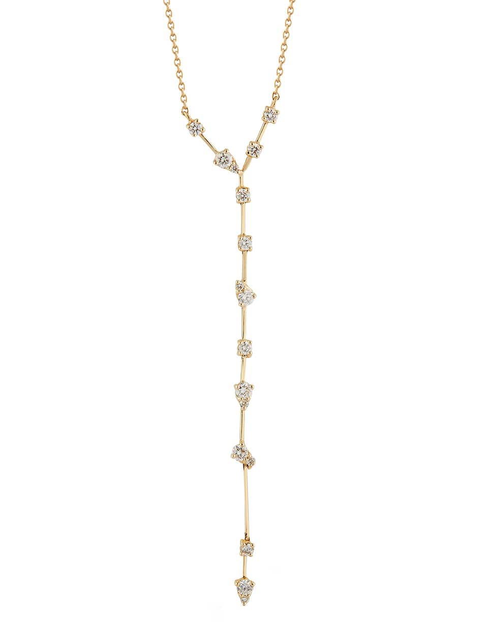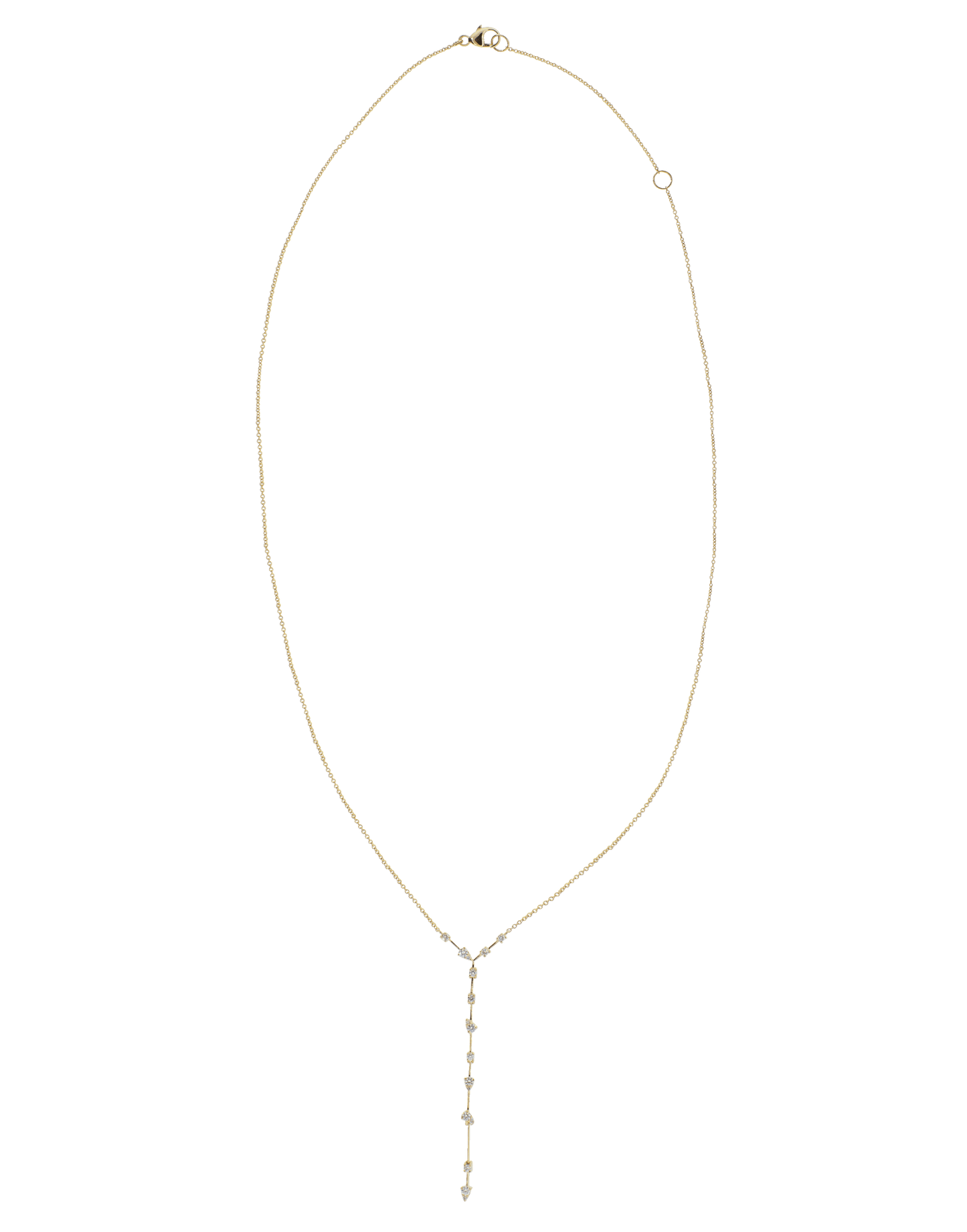 This Sophia Ryan diamond necklace has a lariat style with delicate diamonds set in 14k yellow gold.