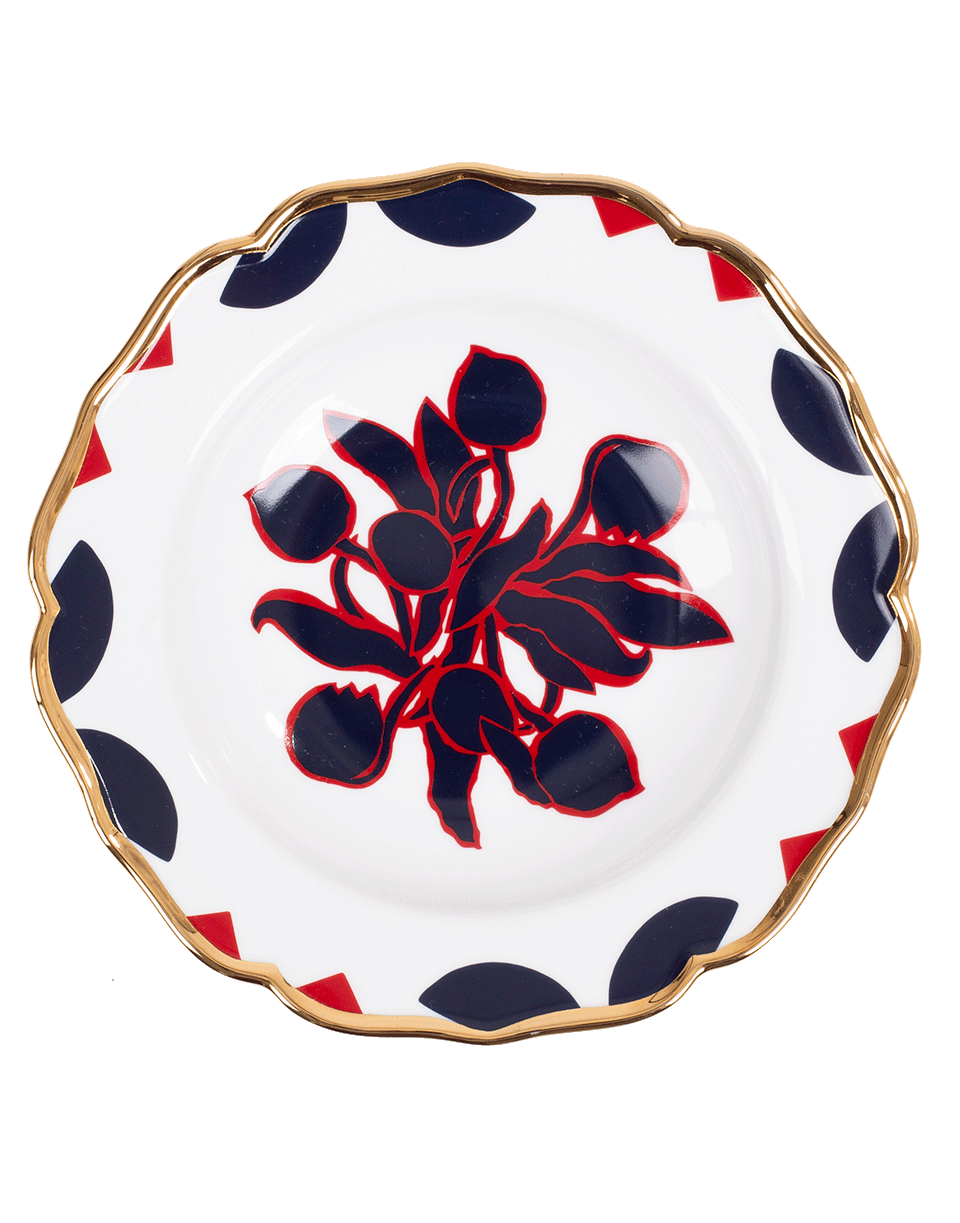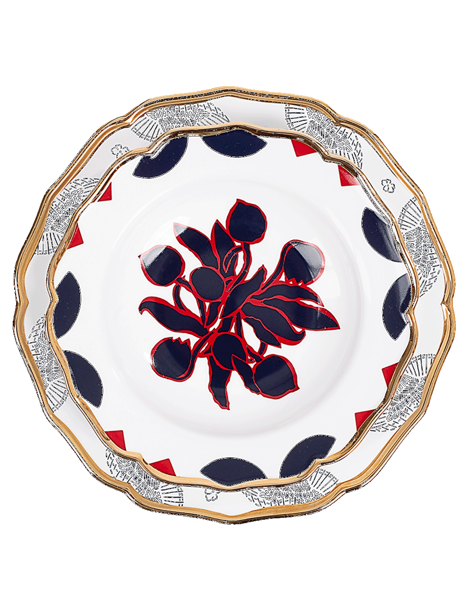 Made in collaboration with Italian ceramic experts, Bitossi Home, our dinner plate set is comprised of a soup plate (also perfect for your Italian pasta) as well as a flat dinner plate, both crafted from a weighty stoneware with hand-painted gold trim. The Oppio set's dinner plate features a redesign of our 1970s Ombrelli print while the soup plate features a redesign of our 1960s Oppio print. Channel your inner Milanese housewife and skip the dishwasher with these precious plates. We know that washing a mano is a major pain, but all that's gold won't be glittering anymore if they hit the suds cycle. Meanwhile, that gold trim is painted entirely by hand, so the gorgeous imperfections are all part of the artisanal Italian package. Enjoy!