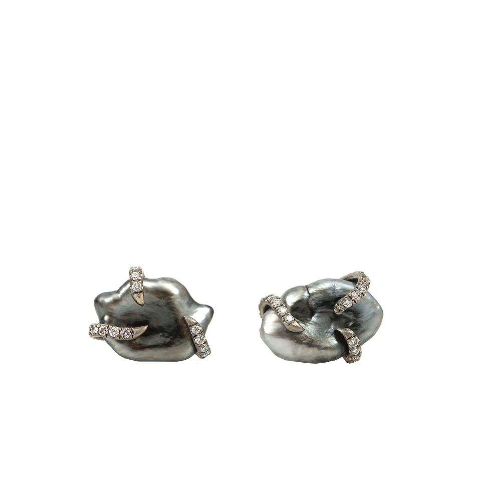 Simply stunning, let your ears illuminate with deep sea glamour in Monique Pean's sustainable south sea keshi pearl earrings.