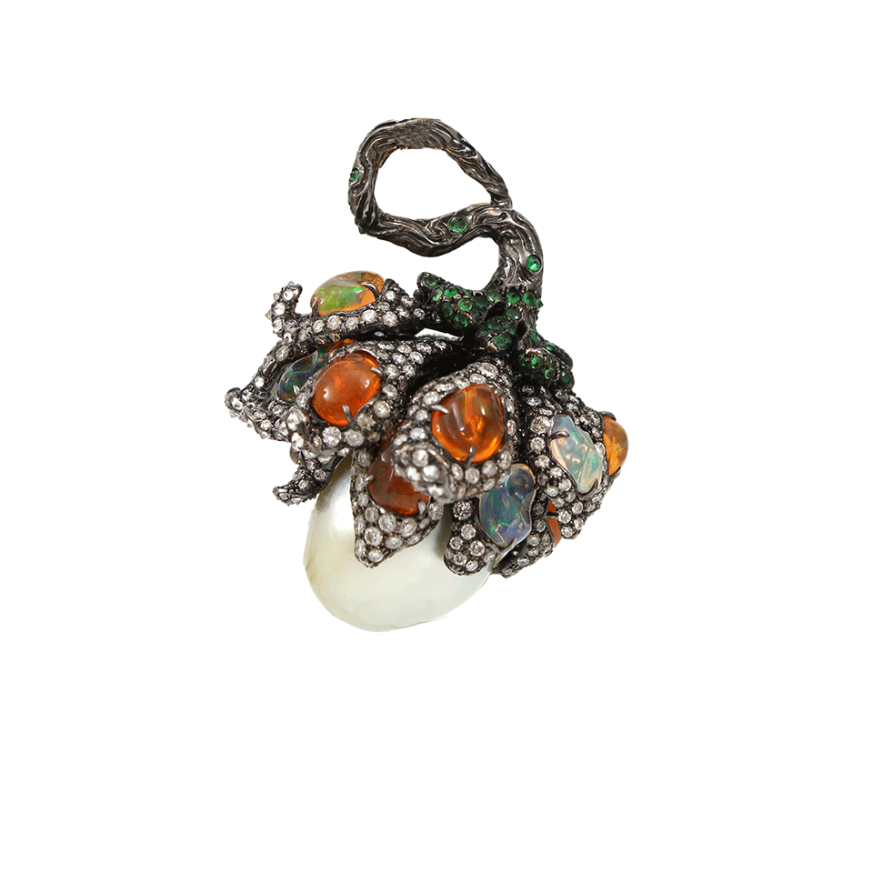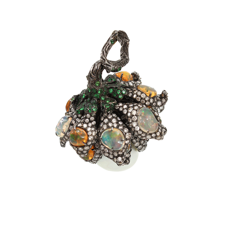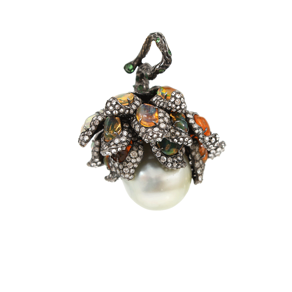 South Sea Pearl And Fire Opal Wildflower Pendant With Tsavorite And Diamonds From Arunashi