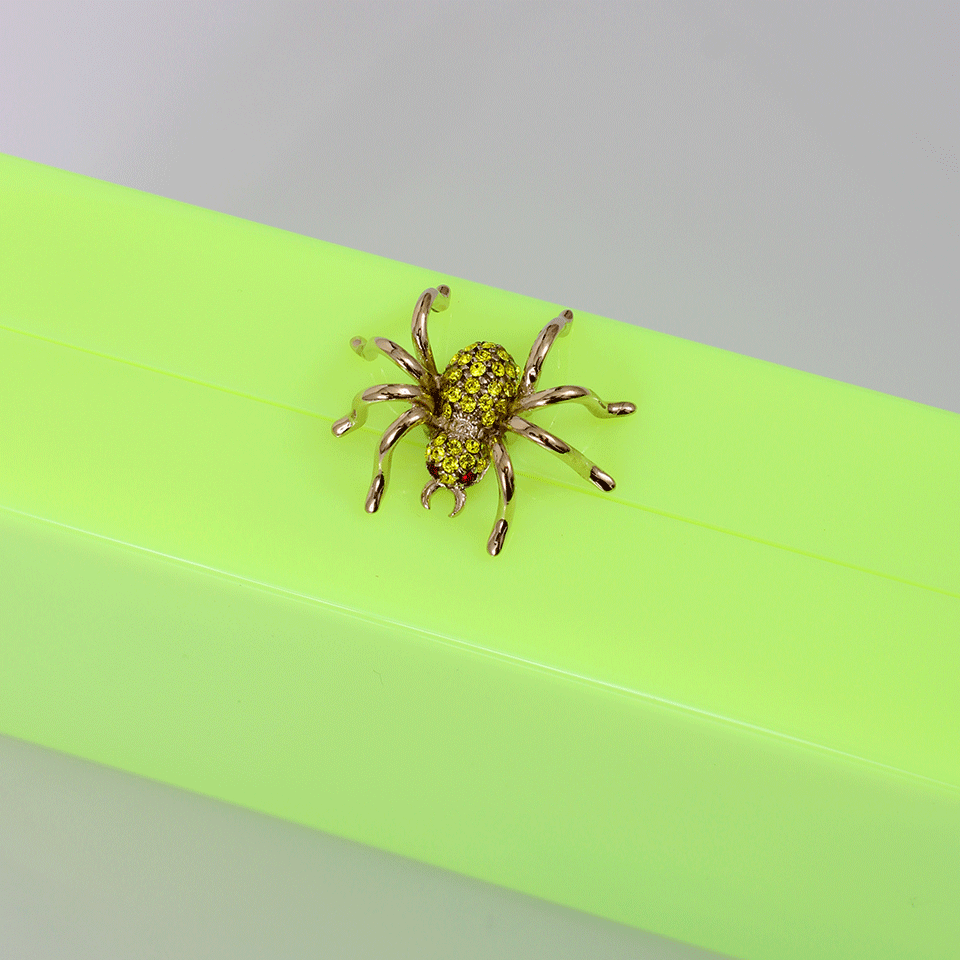 Hinge And Push Clasp Closure With Signature Rhinestone Spider Detail