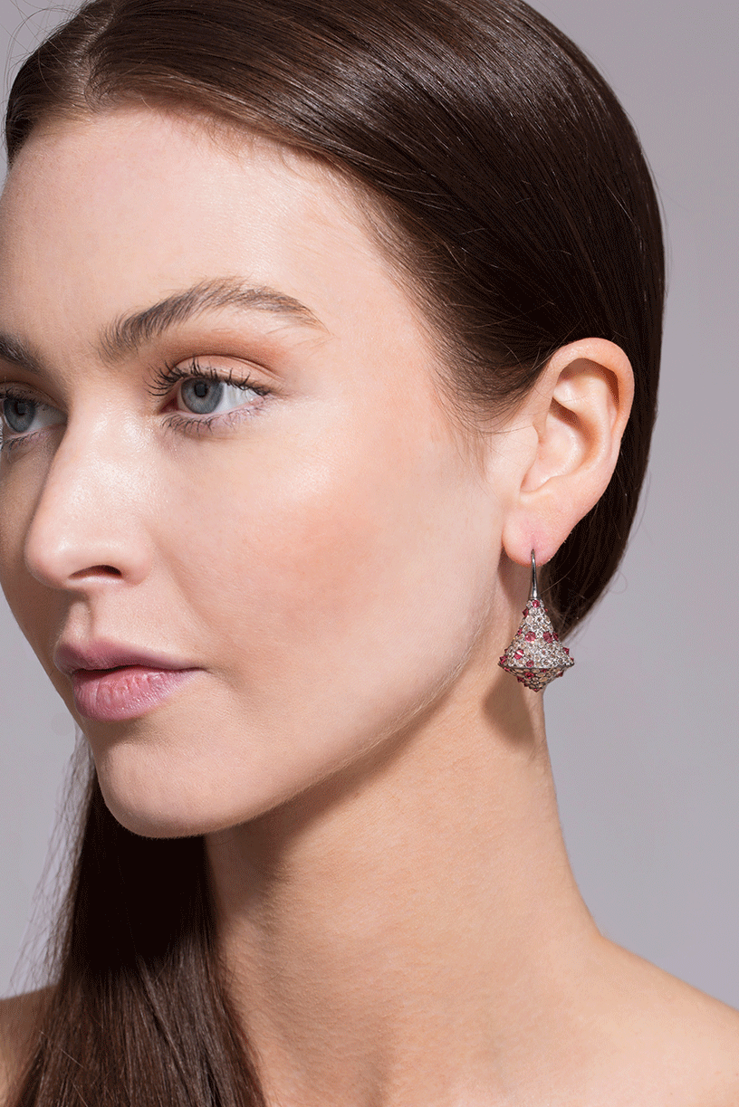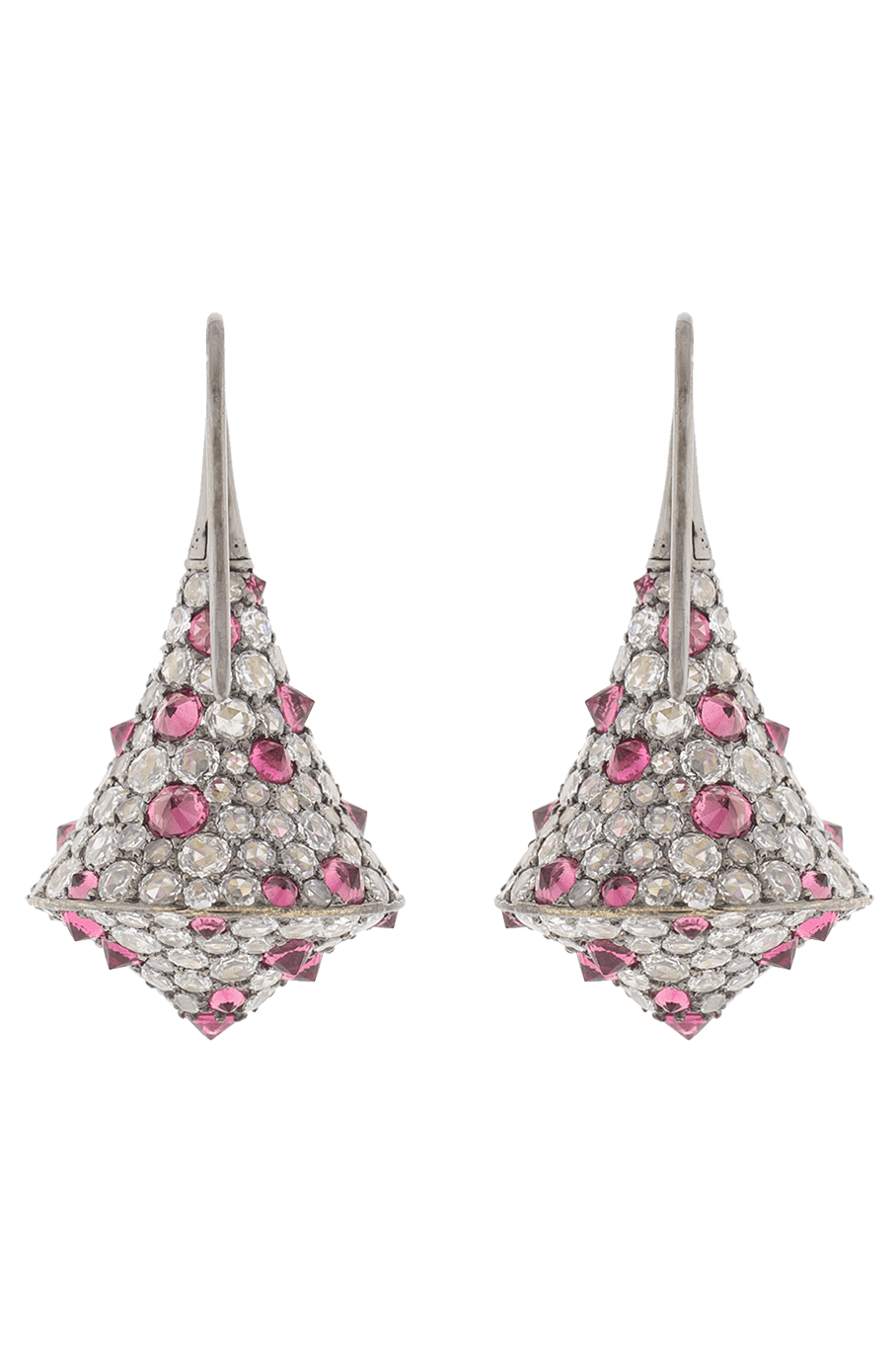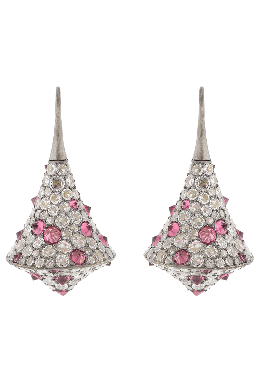 Arunashi Spinner earrings with spinel and rosecut diamonds. For pierced ears.