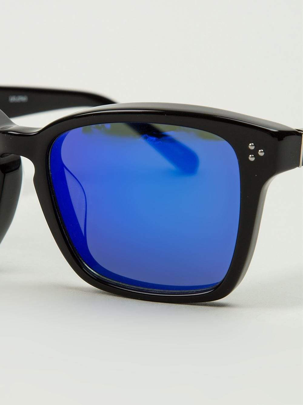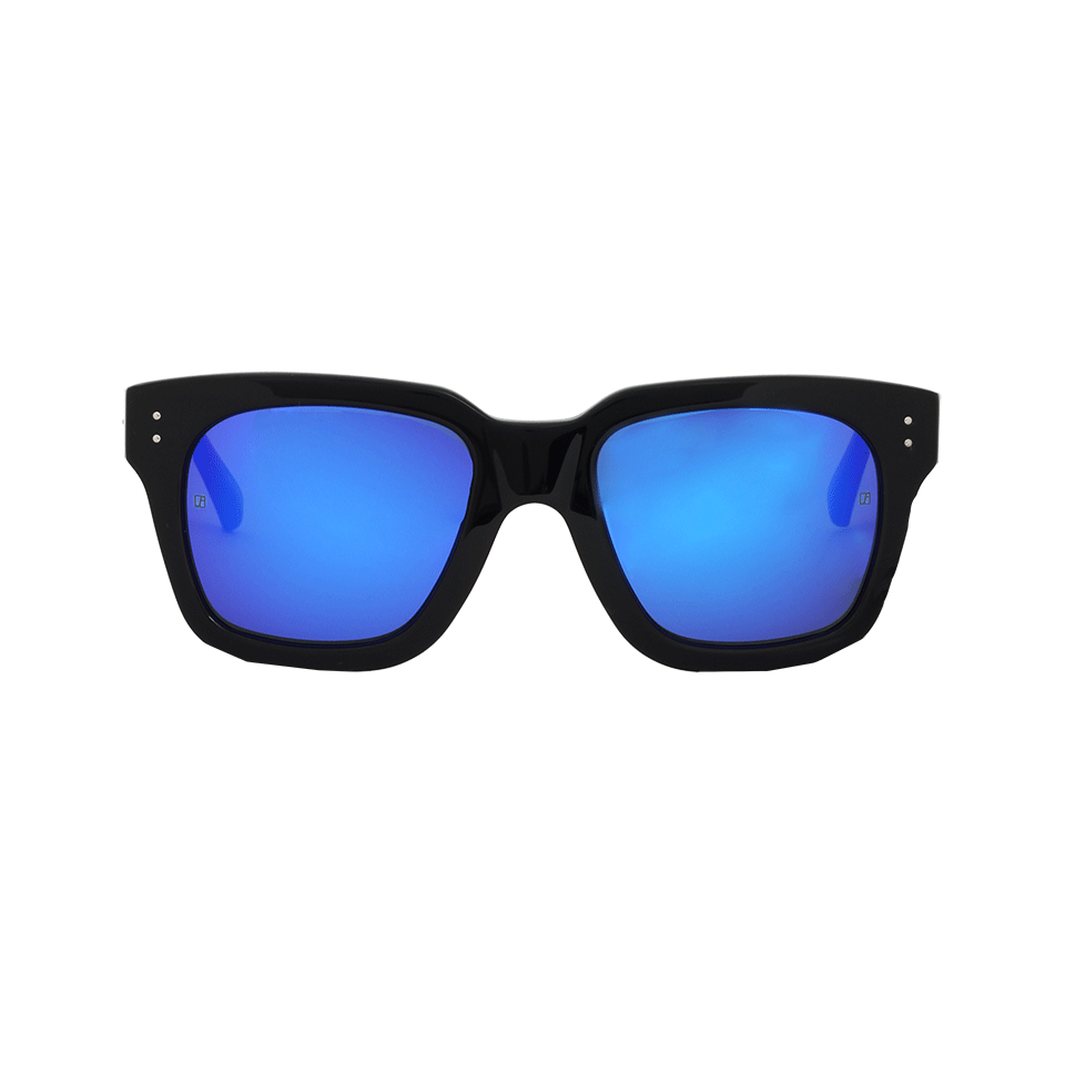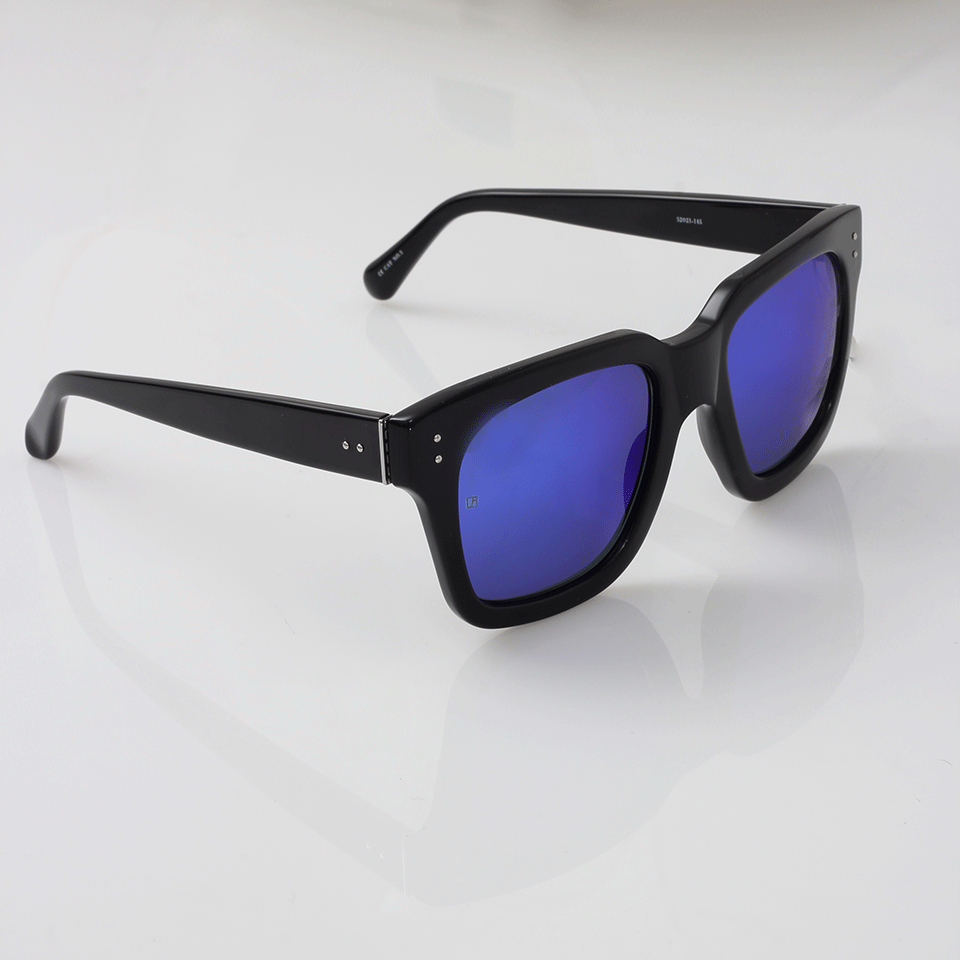 Black Acetate Frames With Blue Mirrored Lenses And Silver Hardware