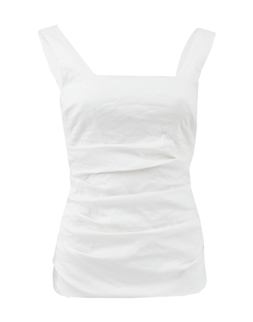 Square Scoop Neckline With Front And Back Ruch Detailing And Back Zip Closure