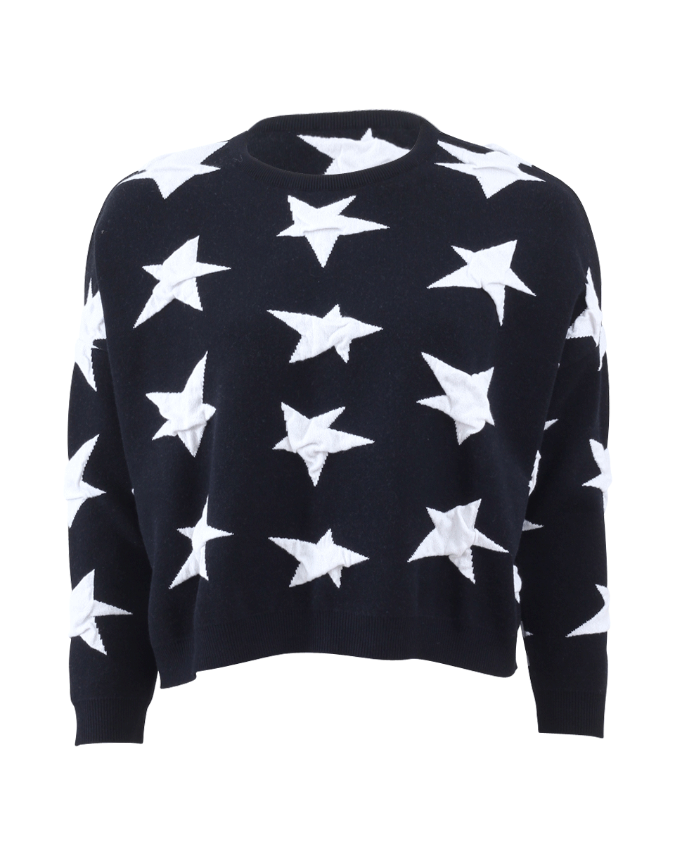 All-Over Woven Star Pattern With Boxy, Loose-Silhouette And Cropped Cut