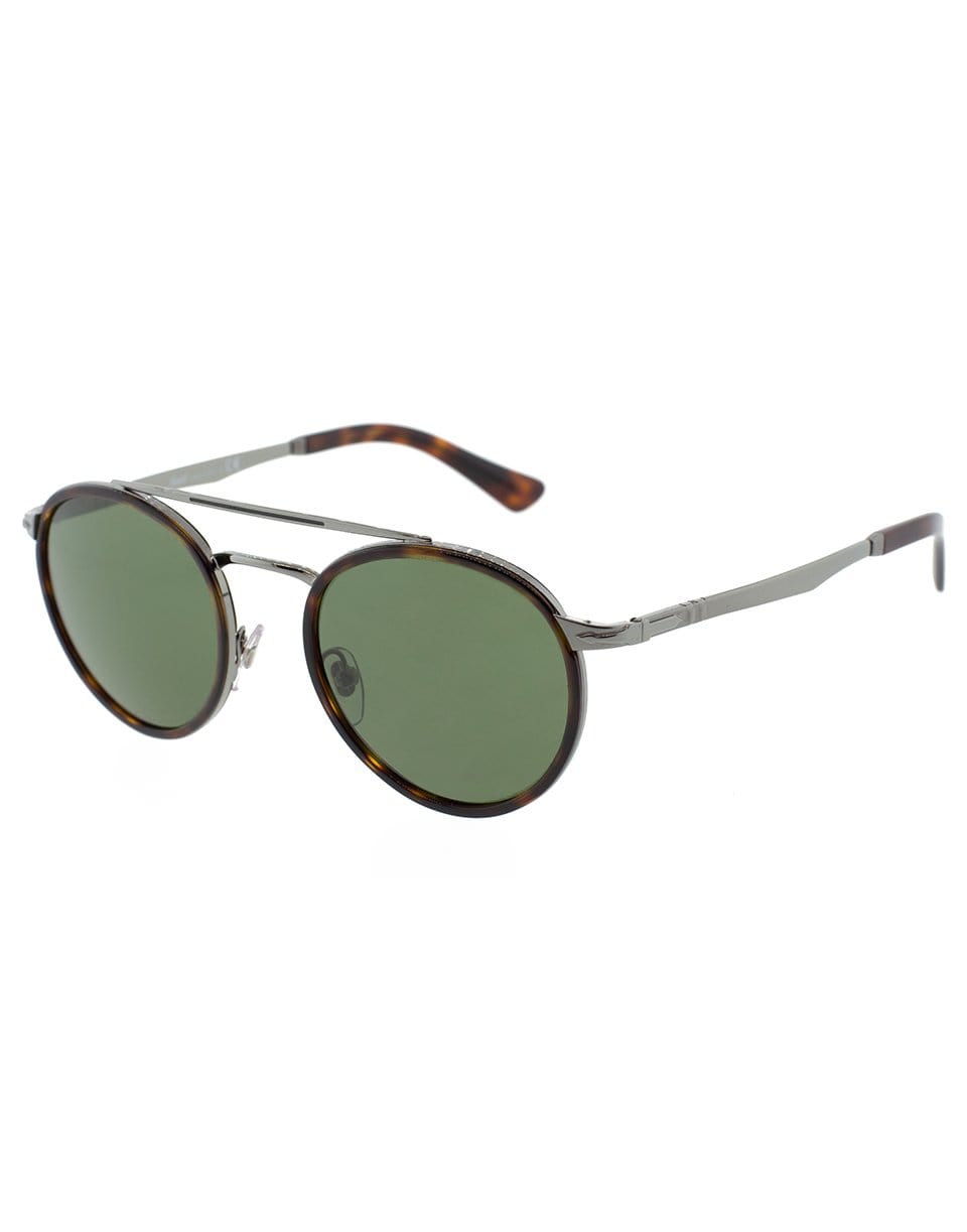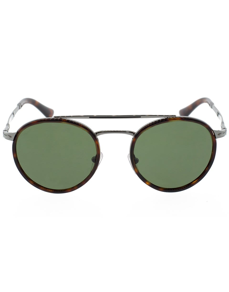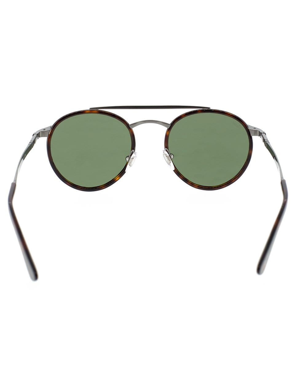Persol steel frame sunglasses with a round shape and gradient gray lenses.