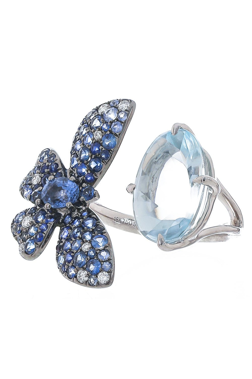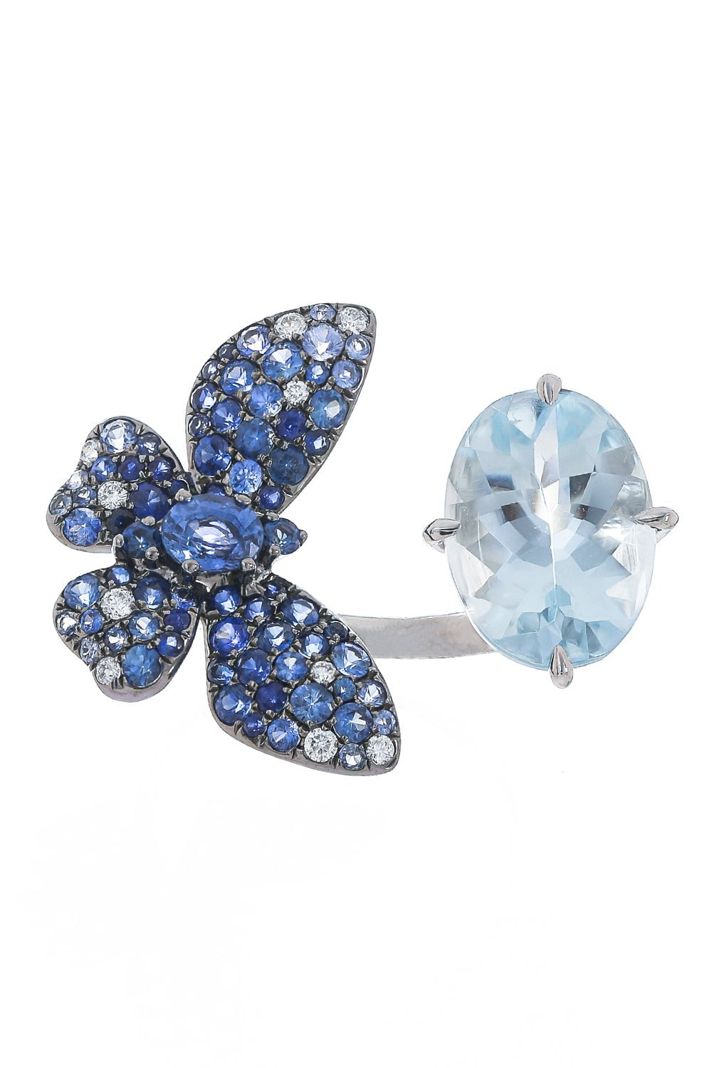 Stefere sapphire aquamarine butterfly ring in white gold.