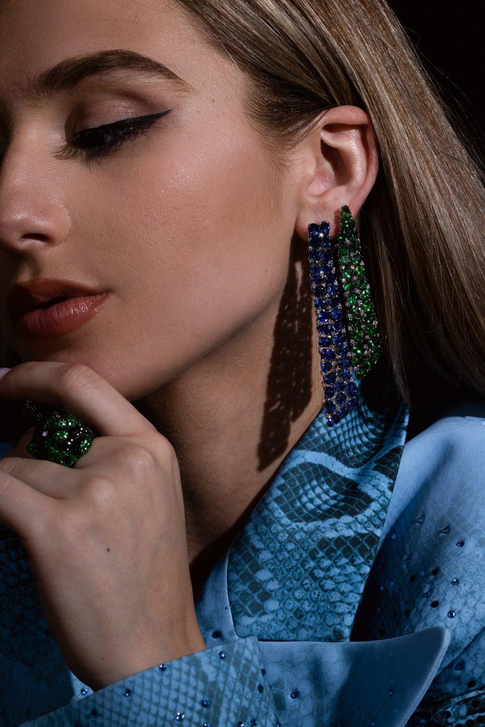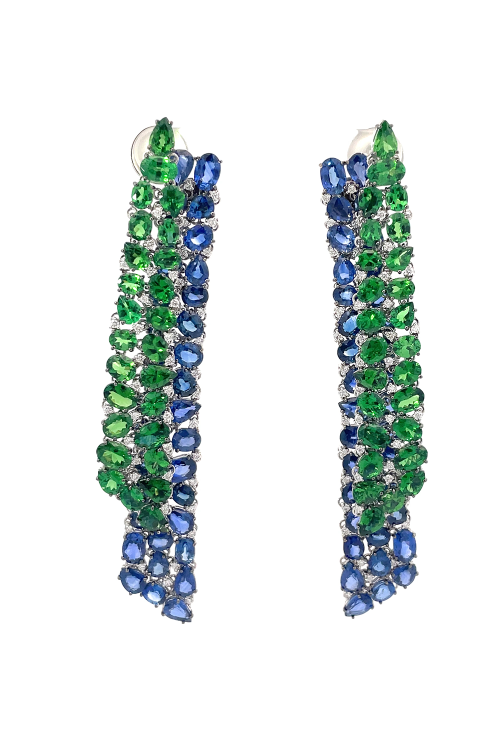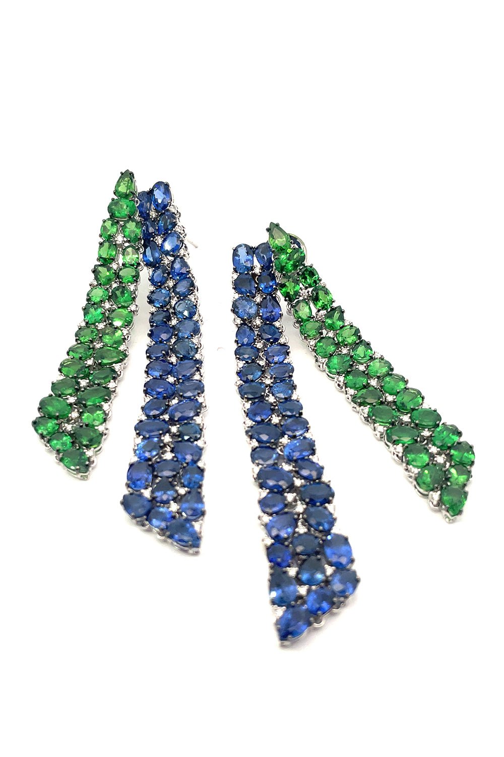 Stefere sapphire tsavorite mix match earrings in white gold.