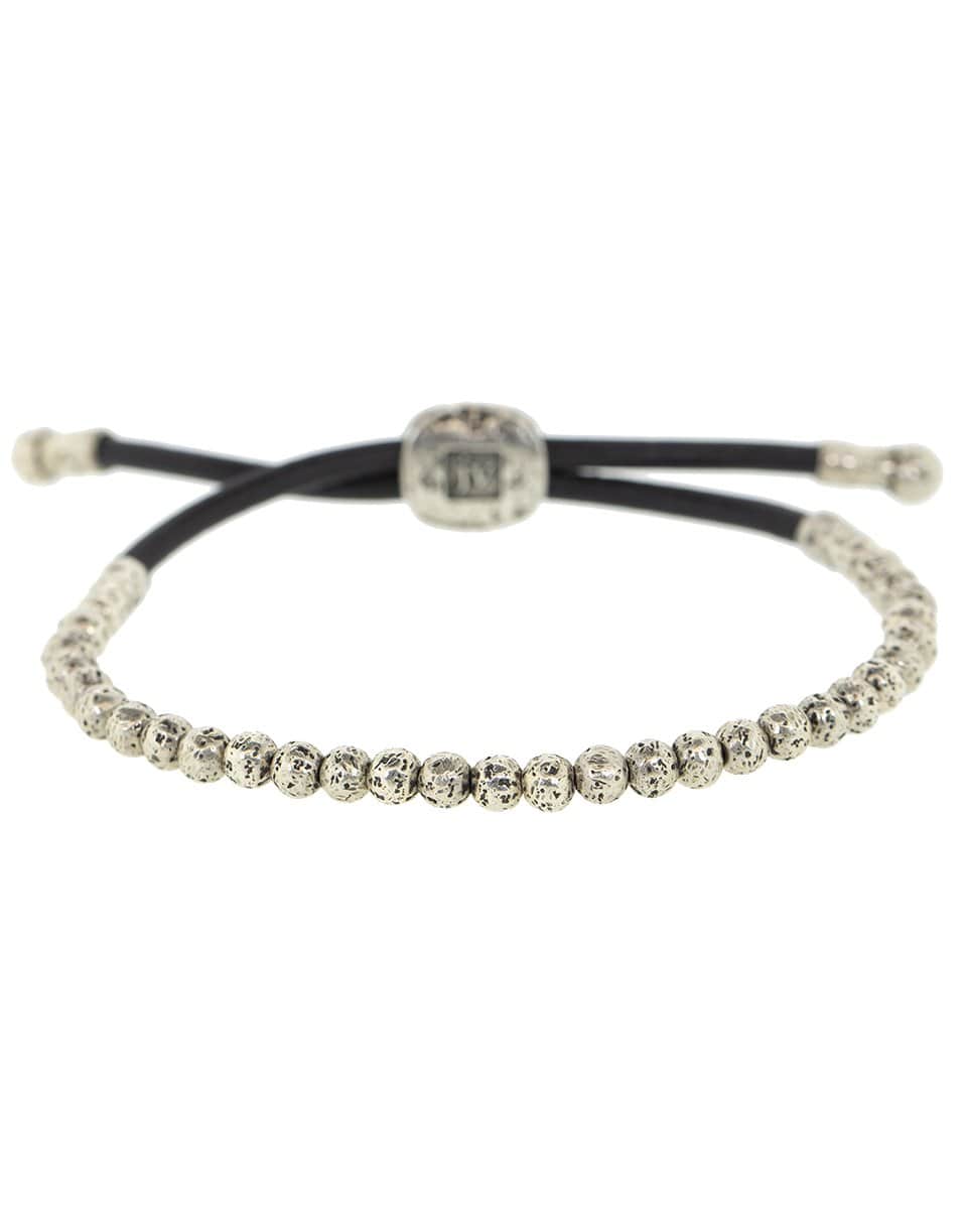 Adjustable 4mm distressed sterling silver bead and leather bracelet from John Varvatos.