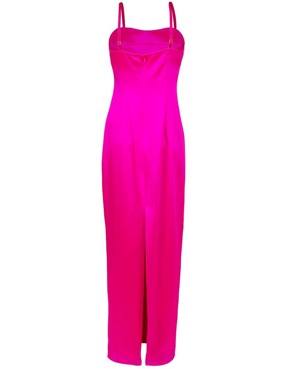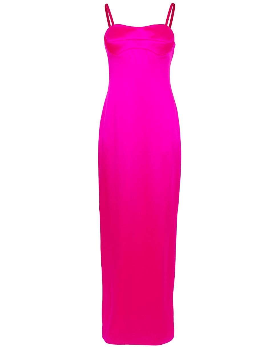 Brandon Maxwell crepe back satin strapless column gown with a flattering slim fit, bustier seaming, and a full length.