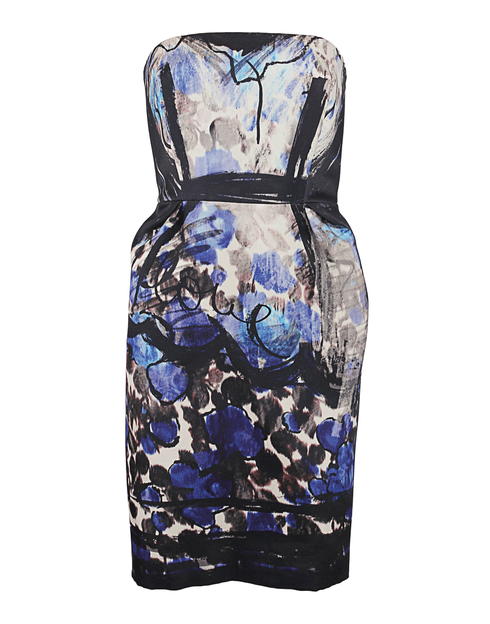 The empire waist and multi-colored, hand painted print of Lanvin’s strapless empire waist print dress fuses for a feminine frock above any other. Allow its cotton-silk fabric to wrap around your silhouette comfortably for day or night with only the switch of a hairdo and shoe. Part of the Les 10 Ans Collection