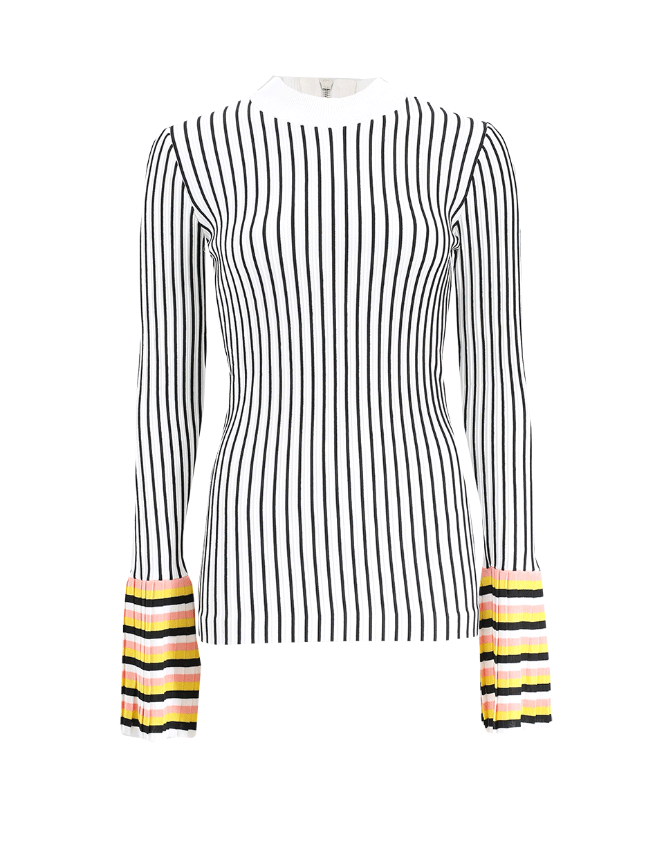 Ribbed Mock Neckline With Exposed Back Zip Closure And Long Sleeves
