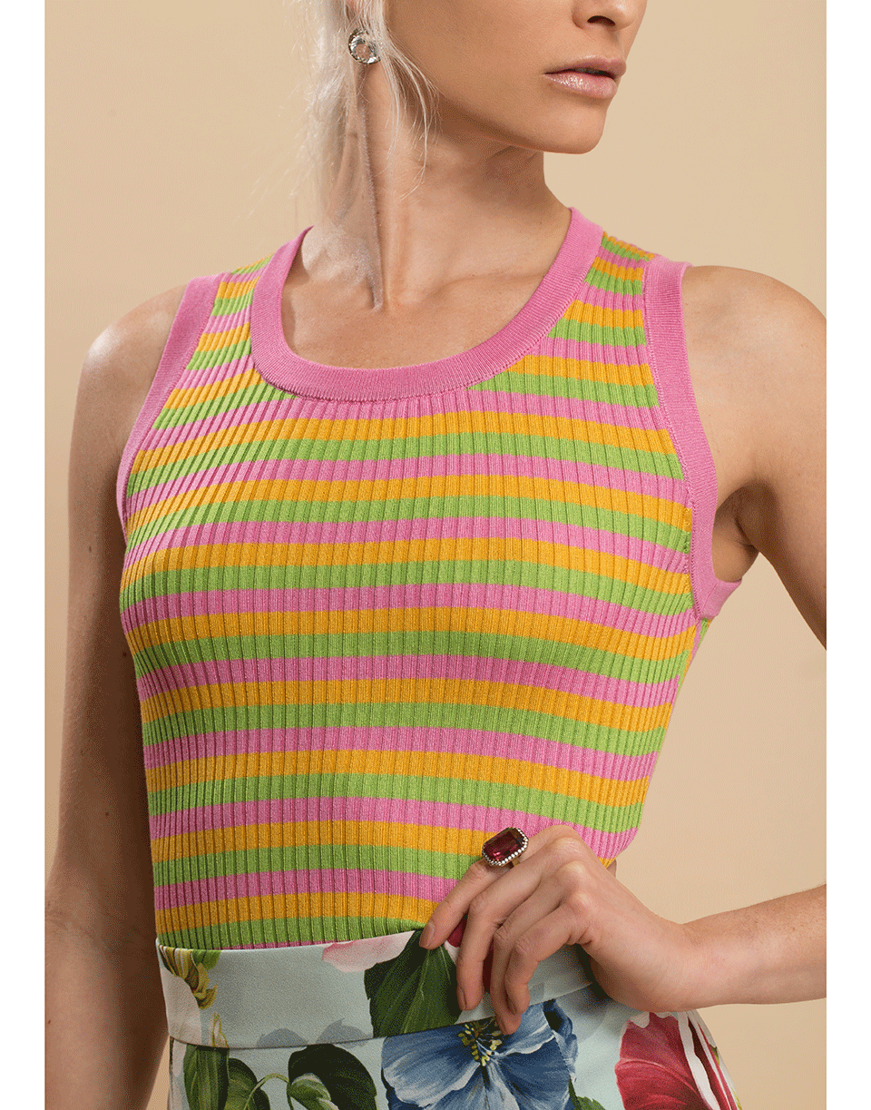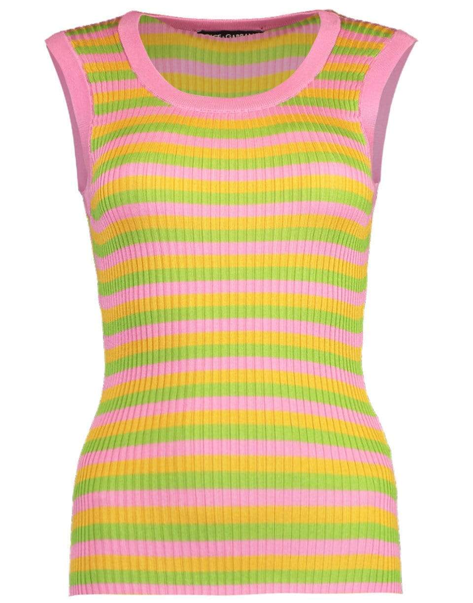 Dolce & Gabbana sleeveless multi-color striped racerback tank top with a slim fit, round neck, and ribbed detail.