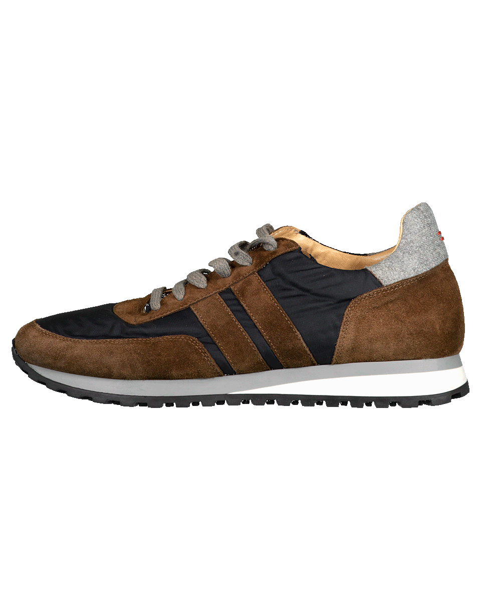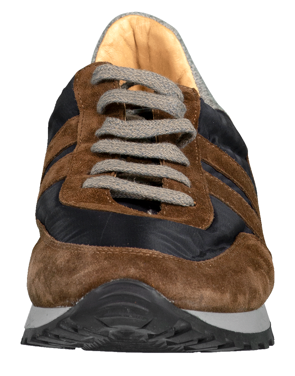 Sporty lace up sneakers from Eleventy with contrasting suede and nylon details, rubber soles, and a 30mm heel.