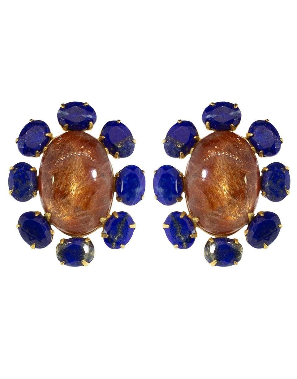 Bounkit Jewelry sunstone and lapis flower earrings with clip backs.