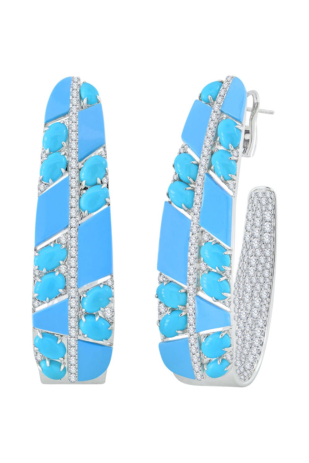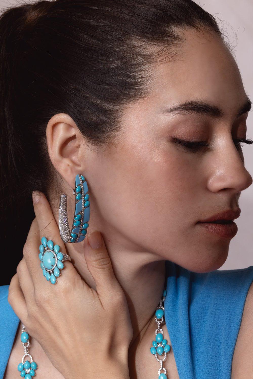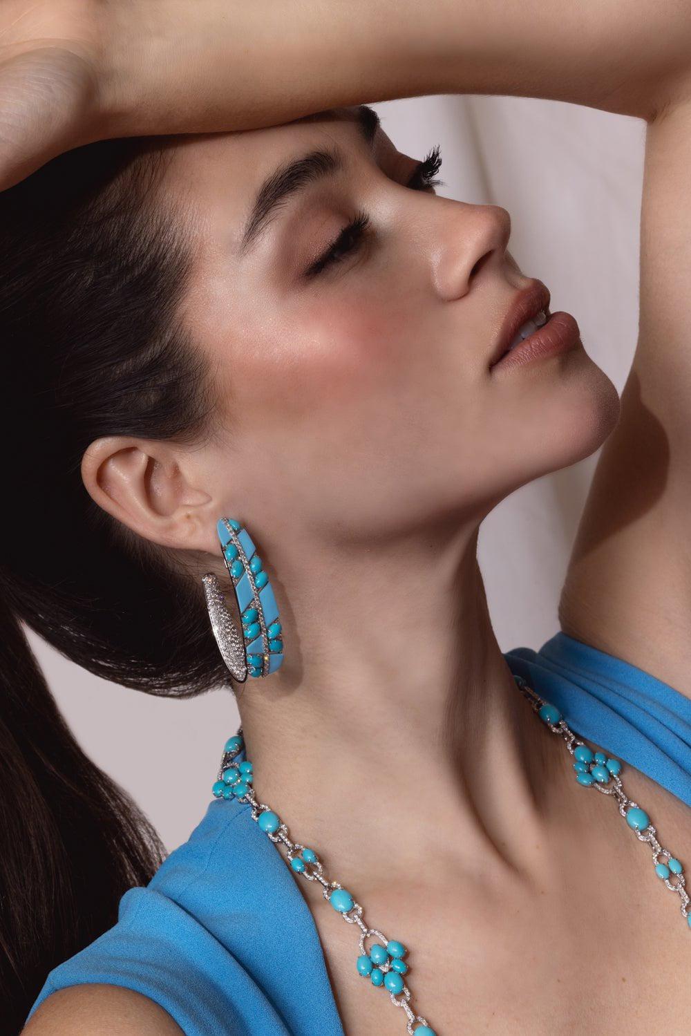 Sutra turquoise diamond ceramic earrings in white gold.