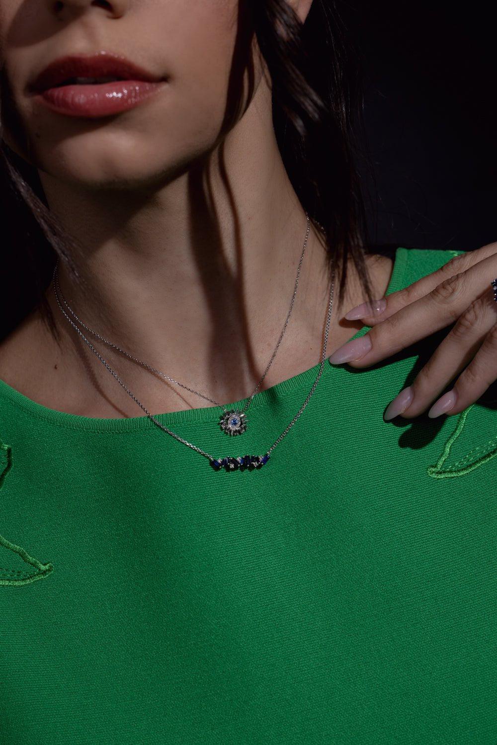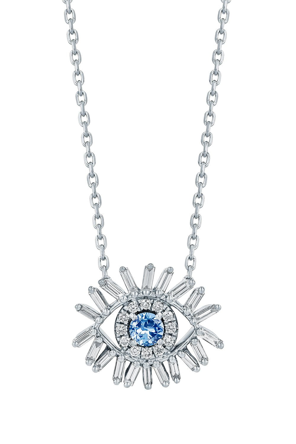Suzanne Kalan evil eye mini sapphire pendat necklace in yellow gold.