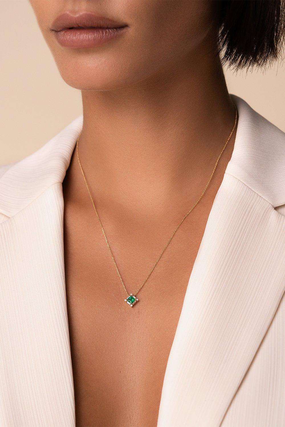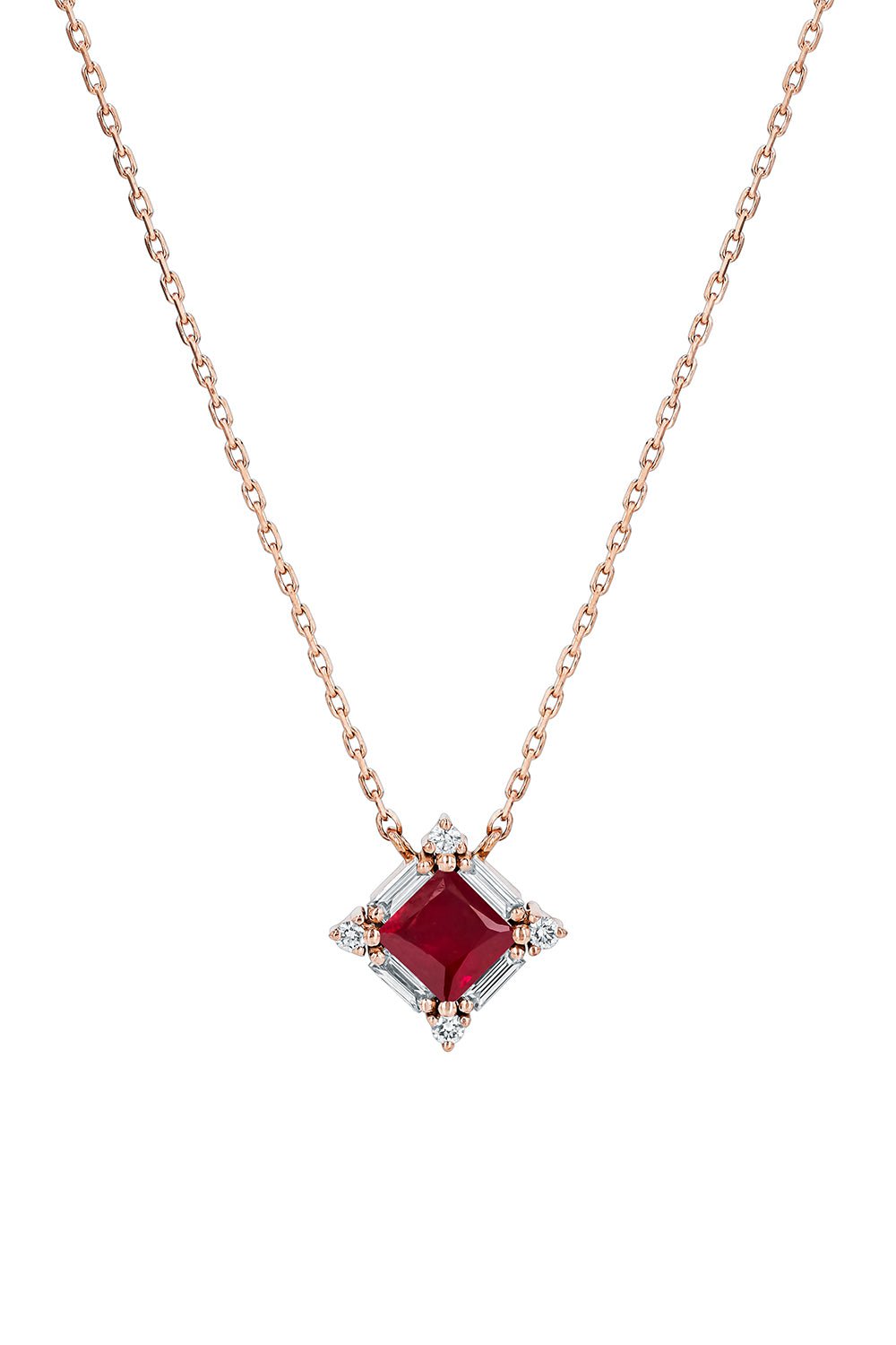 Suzanne Kalan princess cut ruby necklace in rose gold.