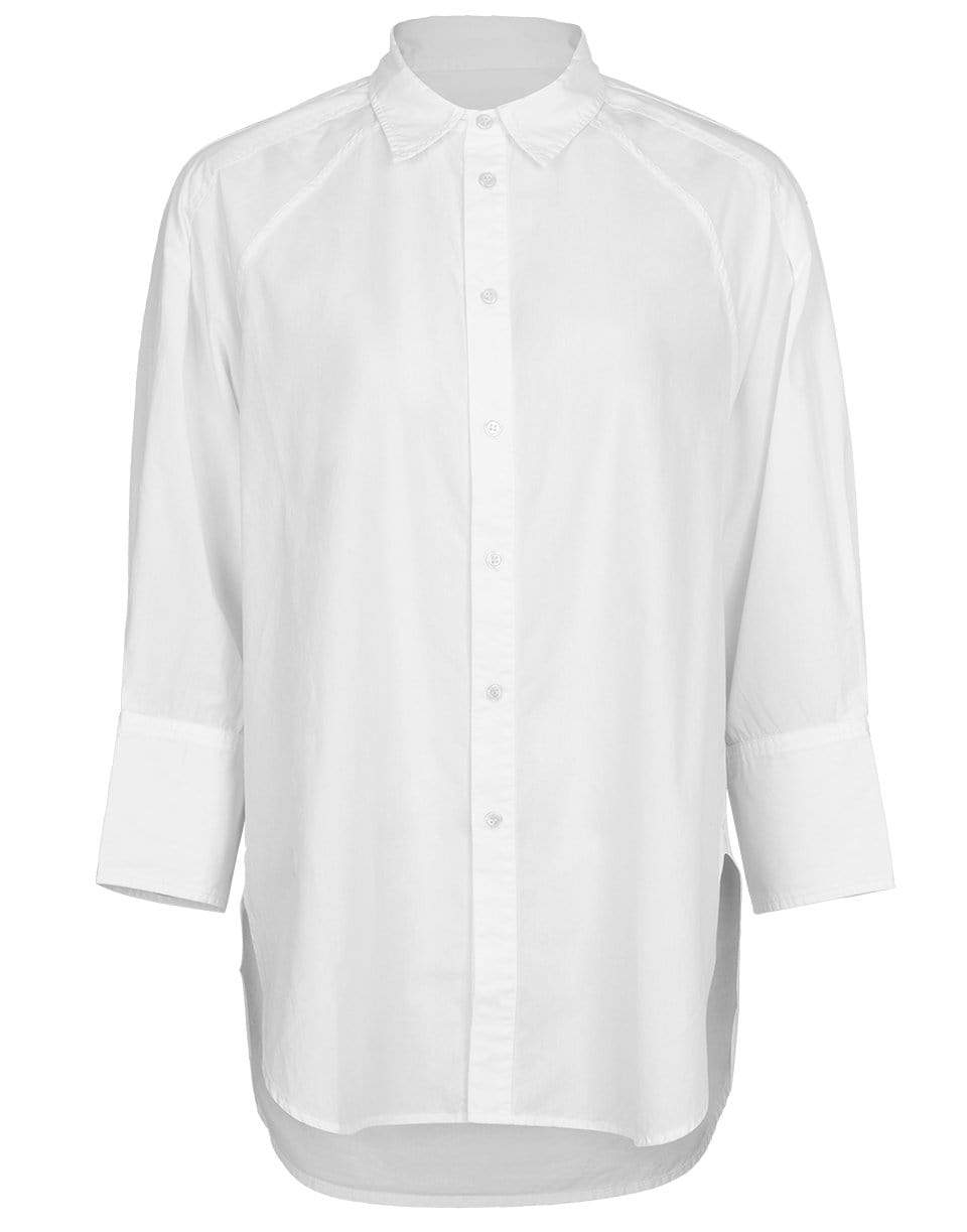 Citizens of Humanity Sybil Shirt with a loose fit, classic collar, button front, cropped balloon sleeves, and a curved hem.