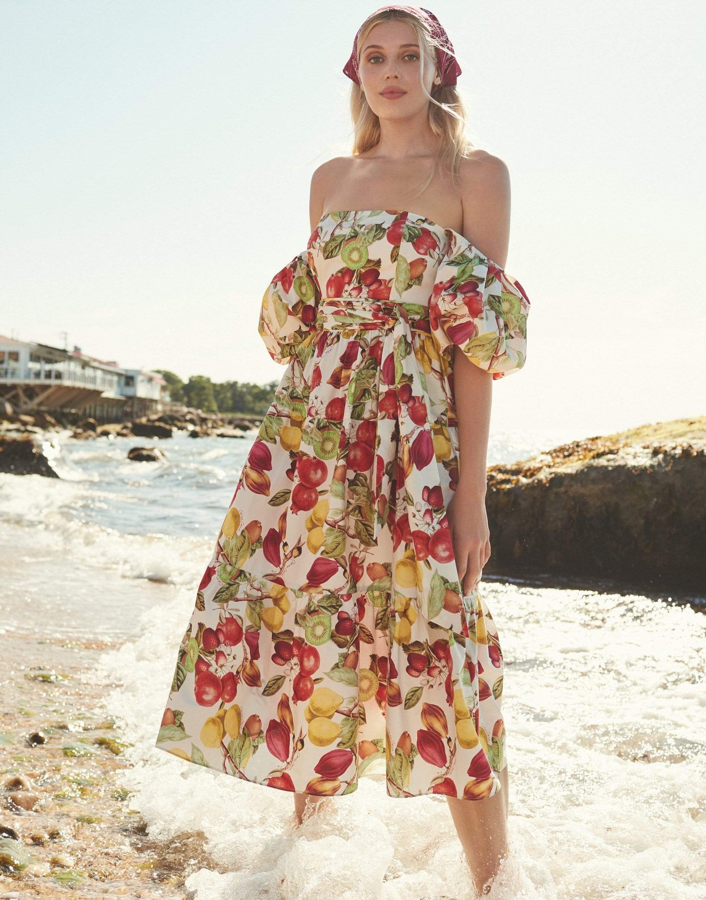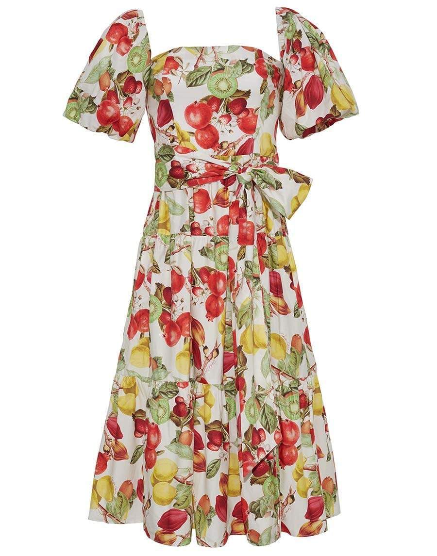 Cara Cara sydney dress in fruit ivory is a puff-sleeve tiered midi dress