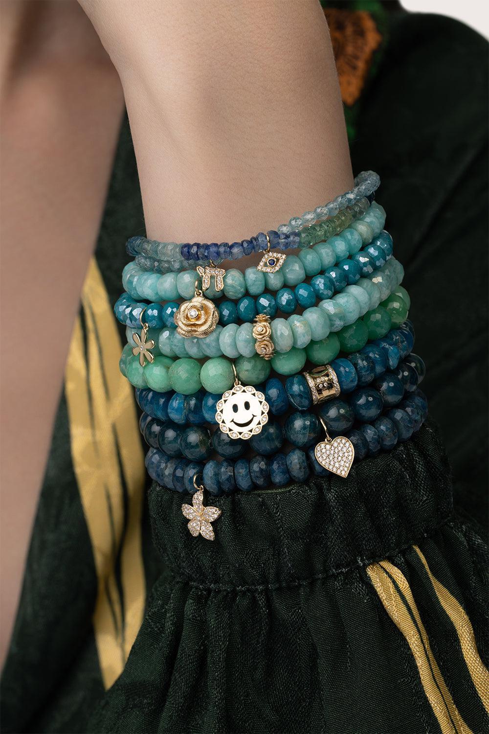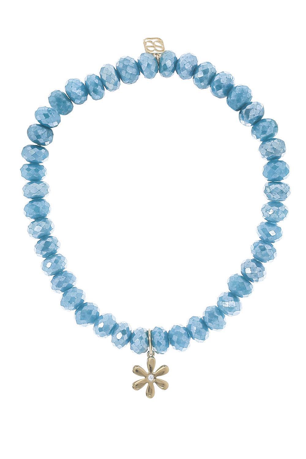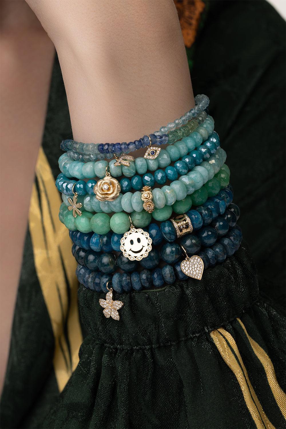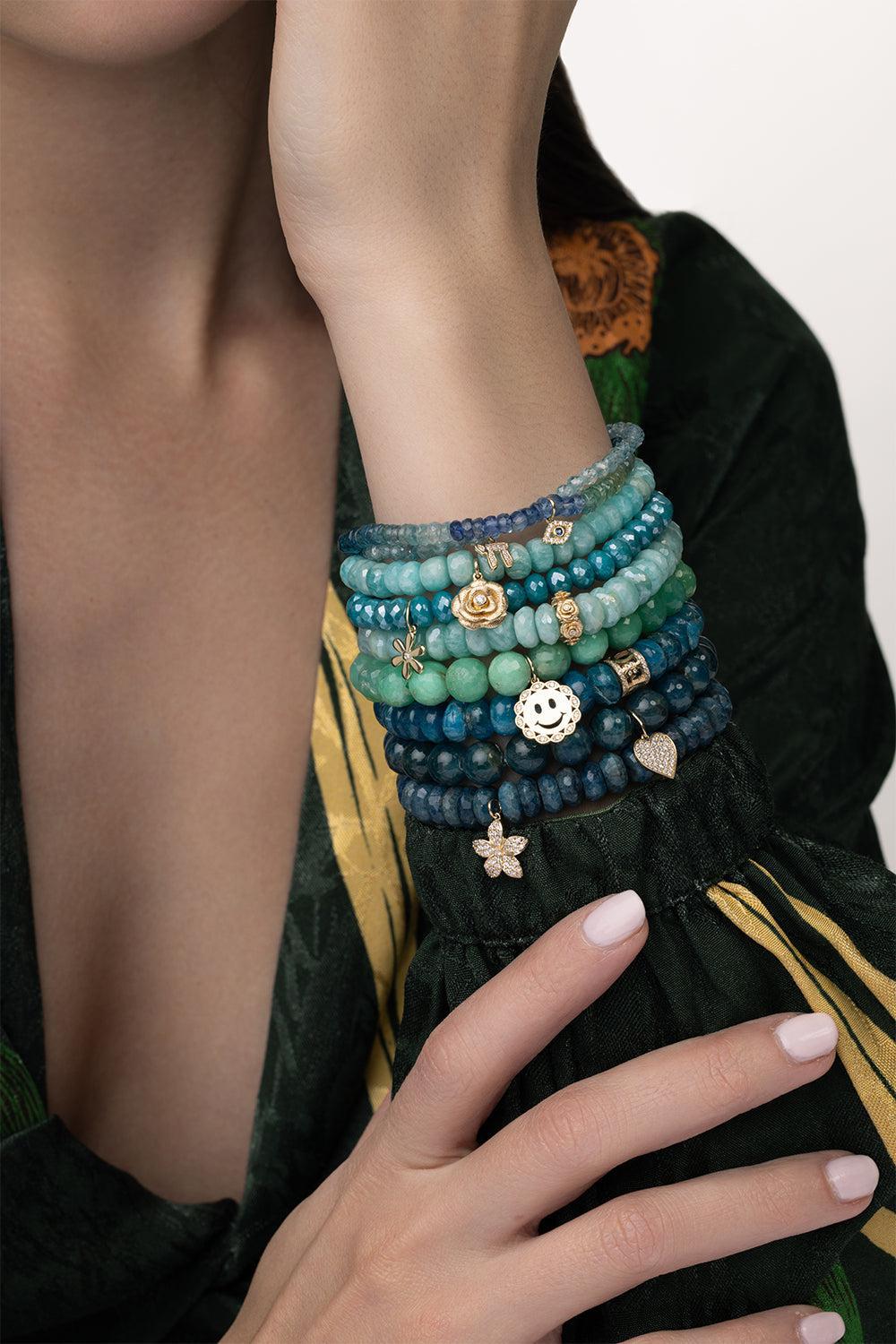 Sydney Evan daisy teal quartz charm bracelet in yellow gold.