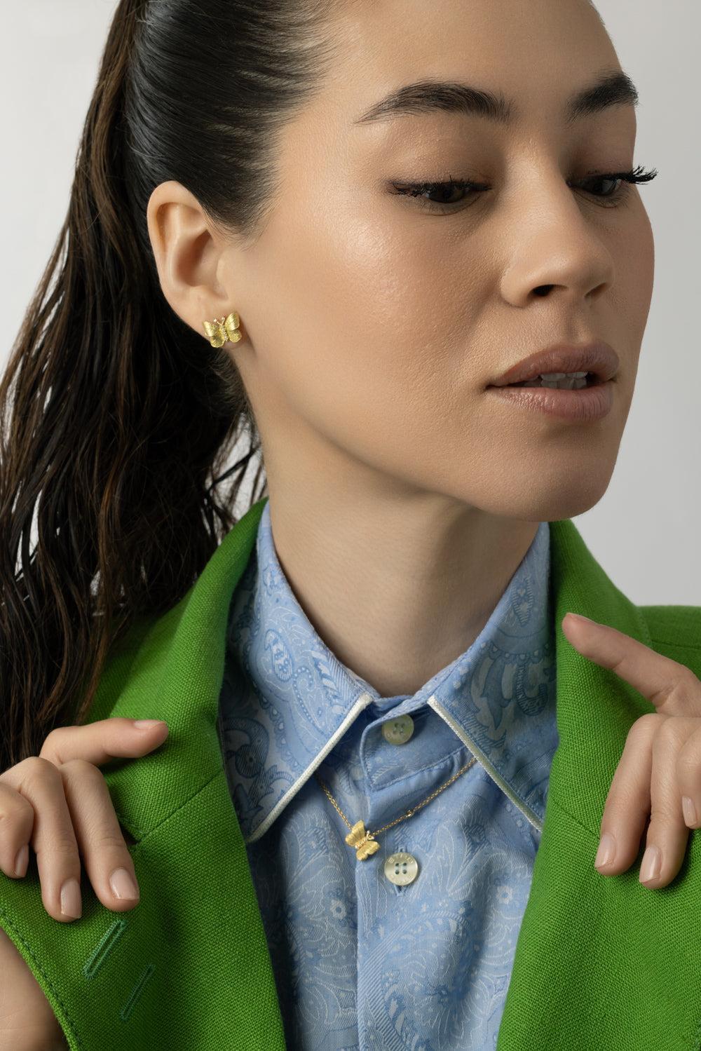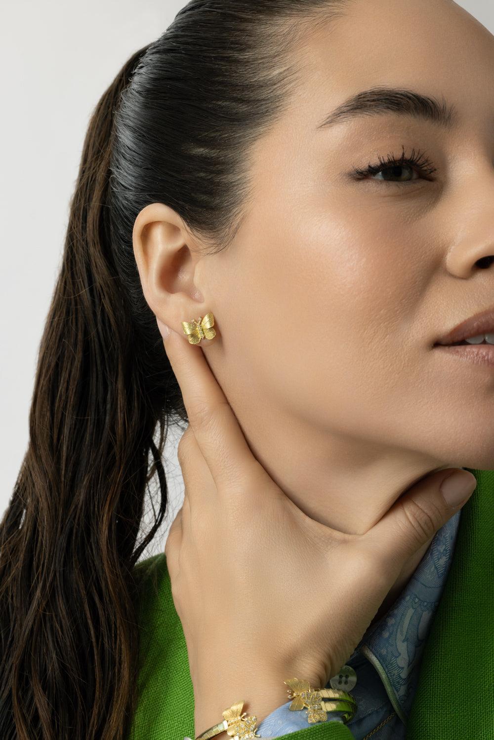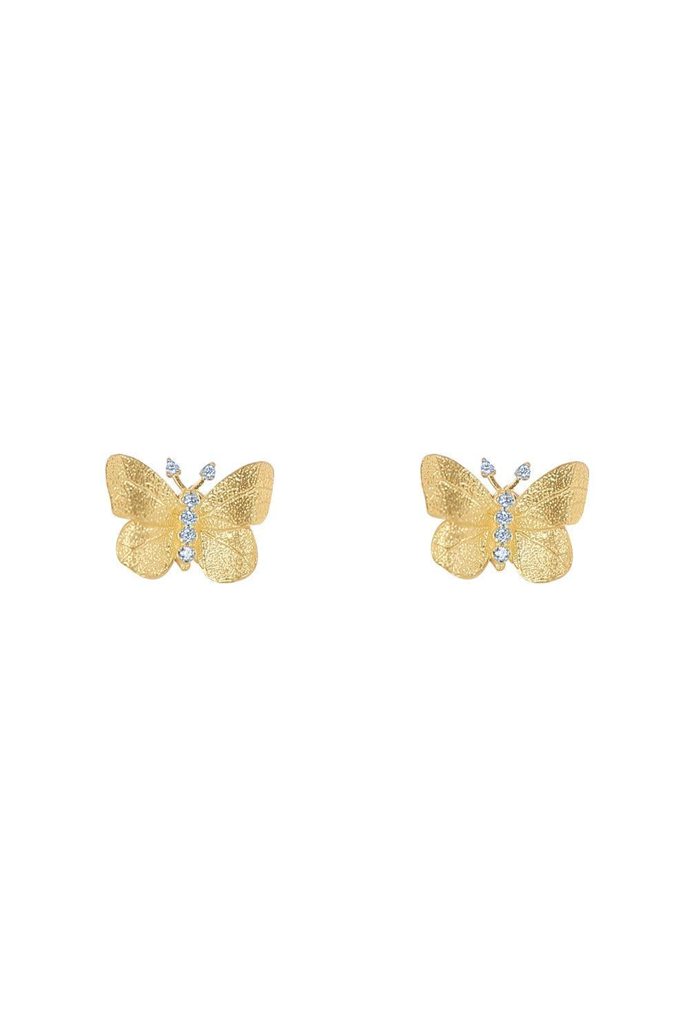 Tanya Farah butterfly diamond stud earrings in yellow gold.