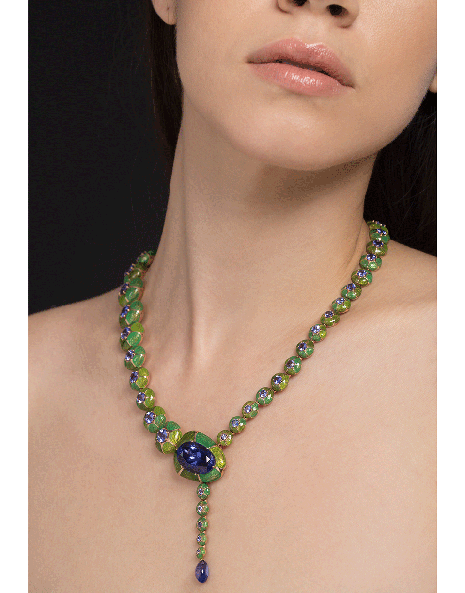 Selim Mouzannar tanzanite and enamel necklace