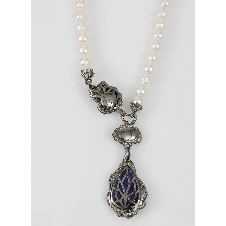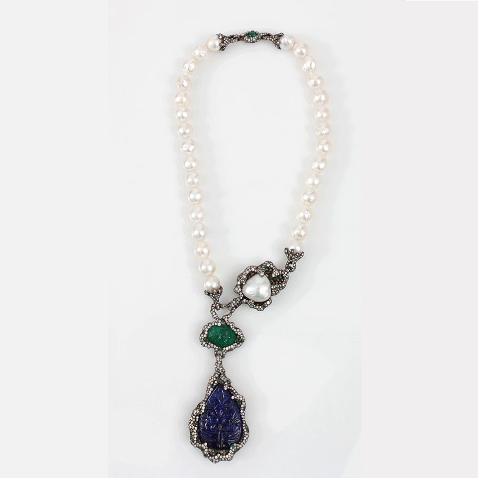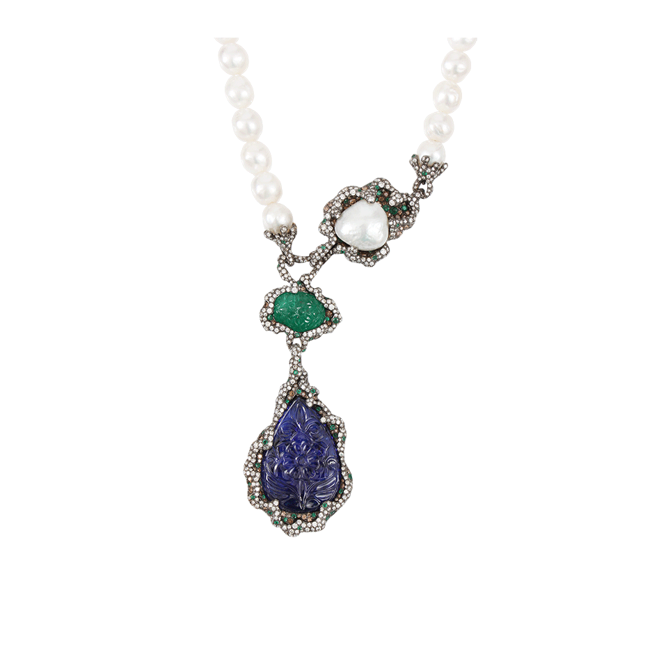Tanzanite, Emerald, And Pearl Necklace With Diamonds From Arunashi