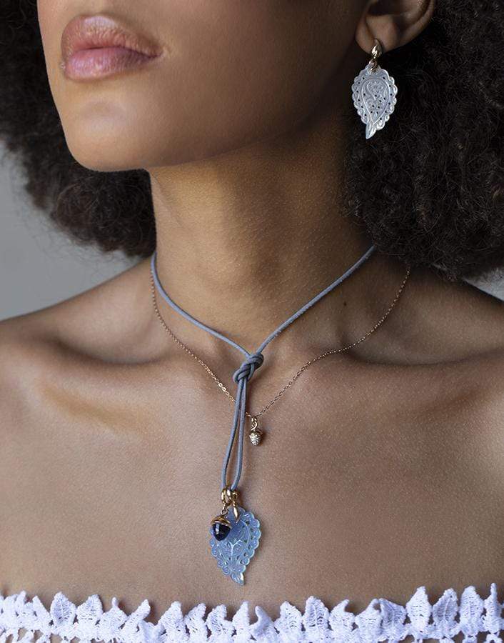 Blue Chalcedony Mikado bouquet pendant from Tamara Comolli's Mikado Collection. This acorn shaped pendant features a clear blue chalcedony gemstone set in 18k rose gold.