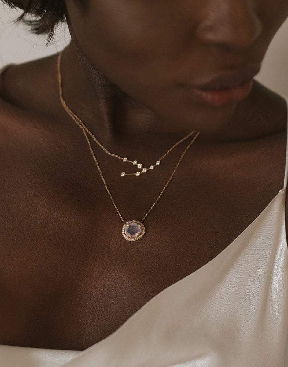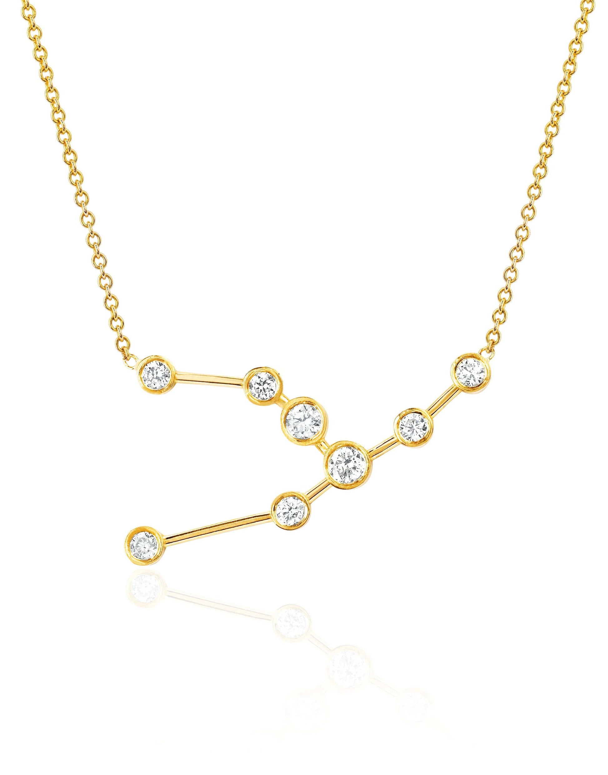Logan Hollowell Taurus diamond constellation necklace. 14k gold and diamond or white sapphire constellation necklace, with .40 total carat weight. Wear your Astrological sign or the sign of a loved one. A perfect custom gift and timeless keepsake of our celestial destiny.
