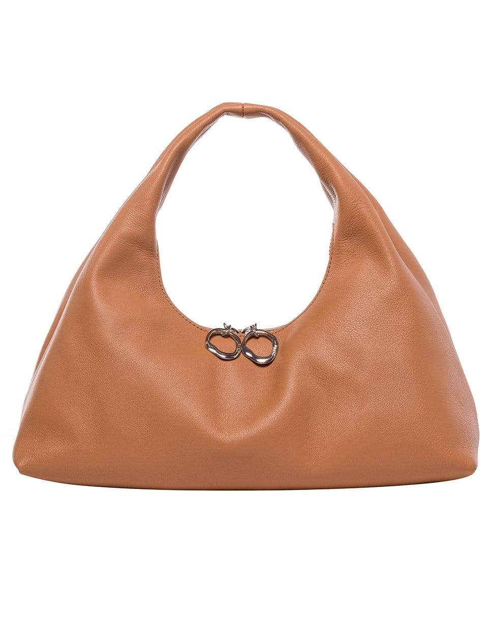The Staud Mini Enzo Bag in tawny is a slouchy soft leather bag featuring a zip closure with ring detail.