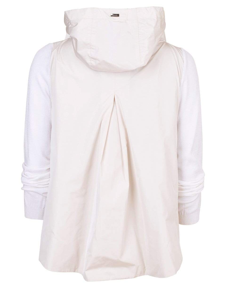 Techno taffeta removable hood jacket with a regular fit, two-way zip closure, drawstring detail, side pockets, long sleeves, and a contrasting back panel.