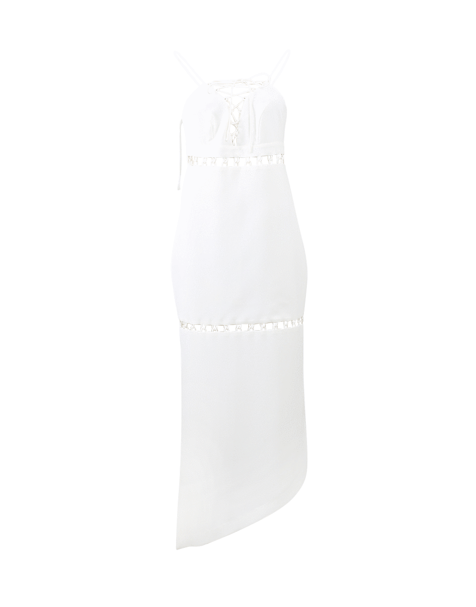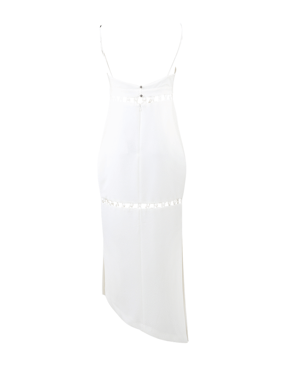 Open Seams At Empire Waist And Knee, Side Vents With Asymmetrical Hem, Slim-Fitting Silhouette And Midi-Length Cut
