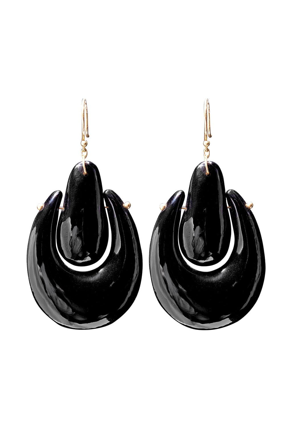 Ten Thousand Things black onyx o'keefe earrings in yellow gold.
