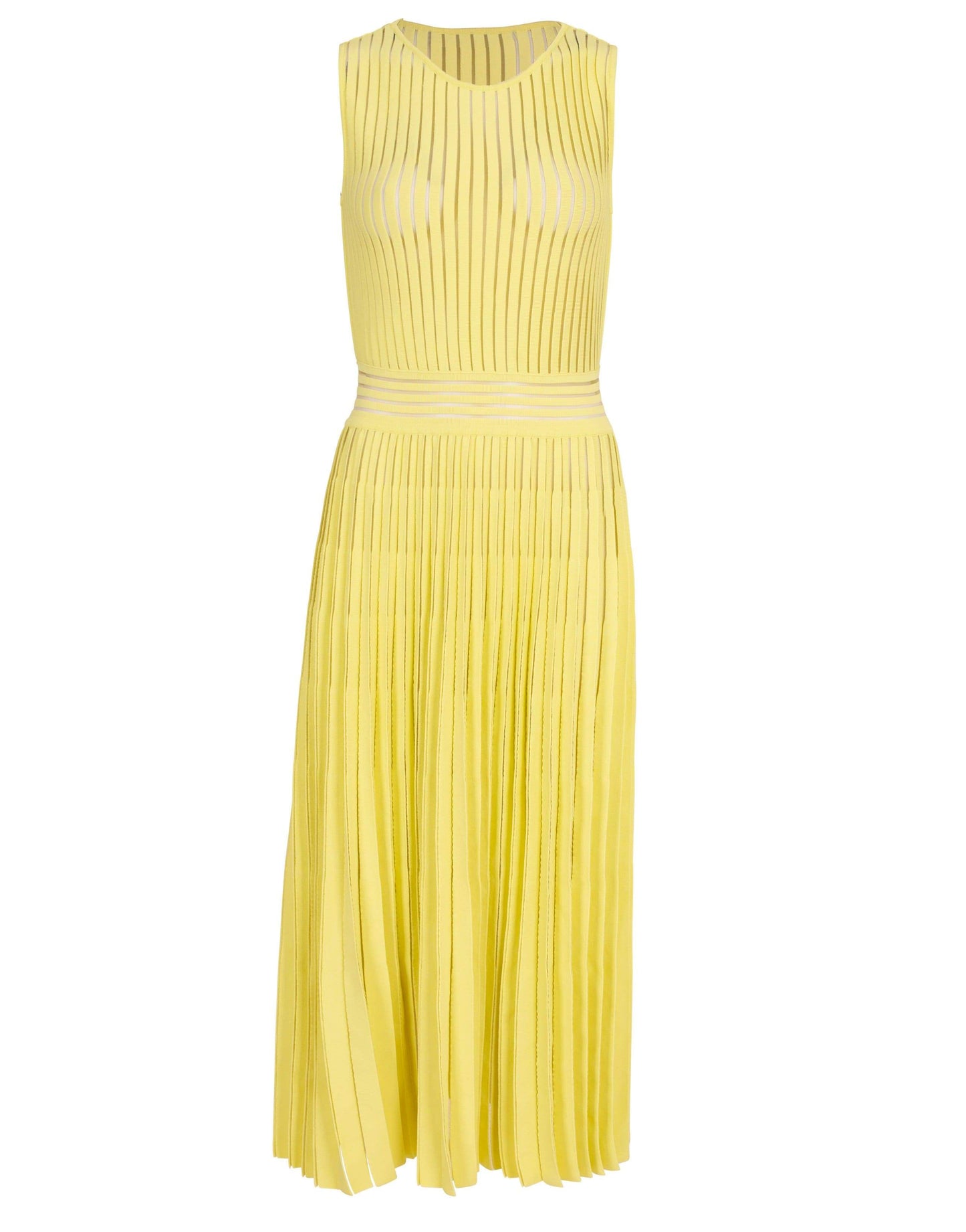 Antonino Valenti crewneck Teti long dress with slip, slim fit, round neck, sleeveless cut, and pleated skirt detail.