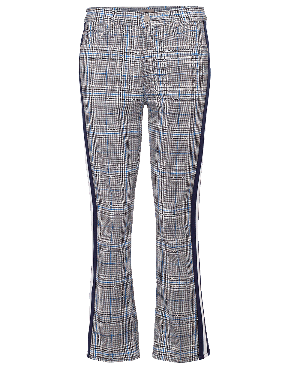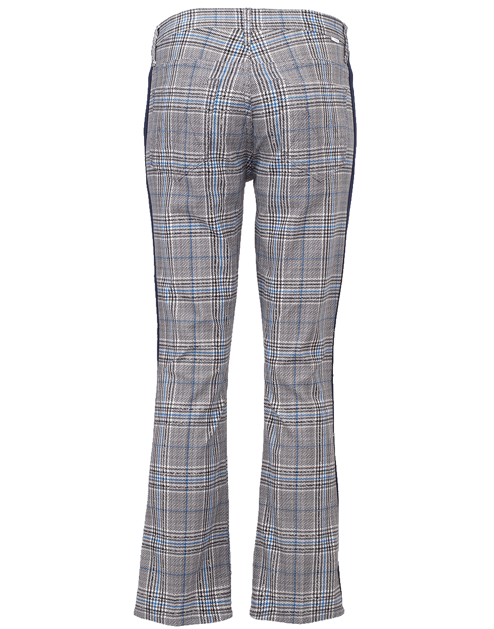 These mid-rise bootcut jeans from Mother feature a trendy plaid print with a stripe detail on each side, a slim fit, and five jean pockets.